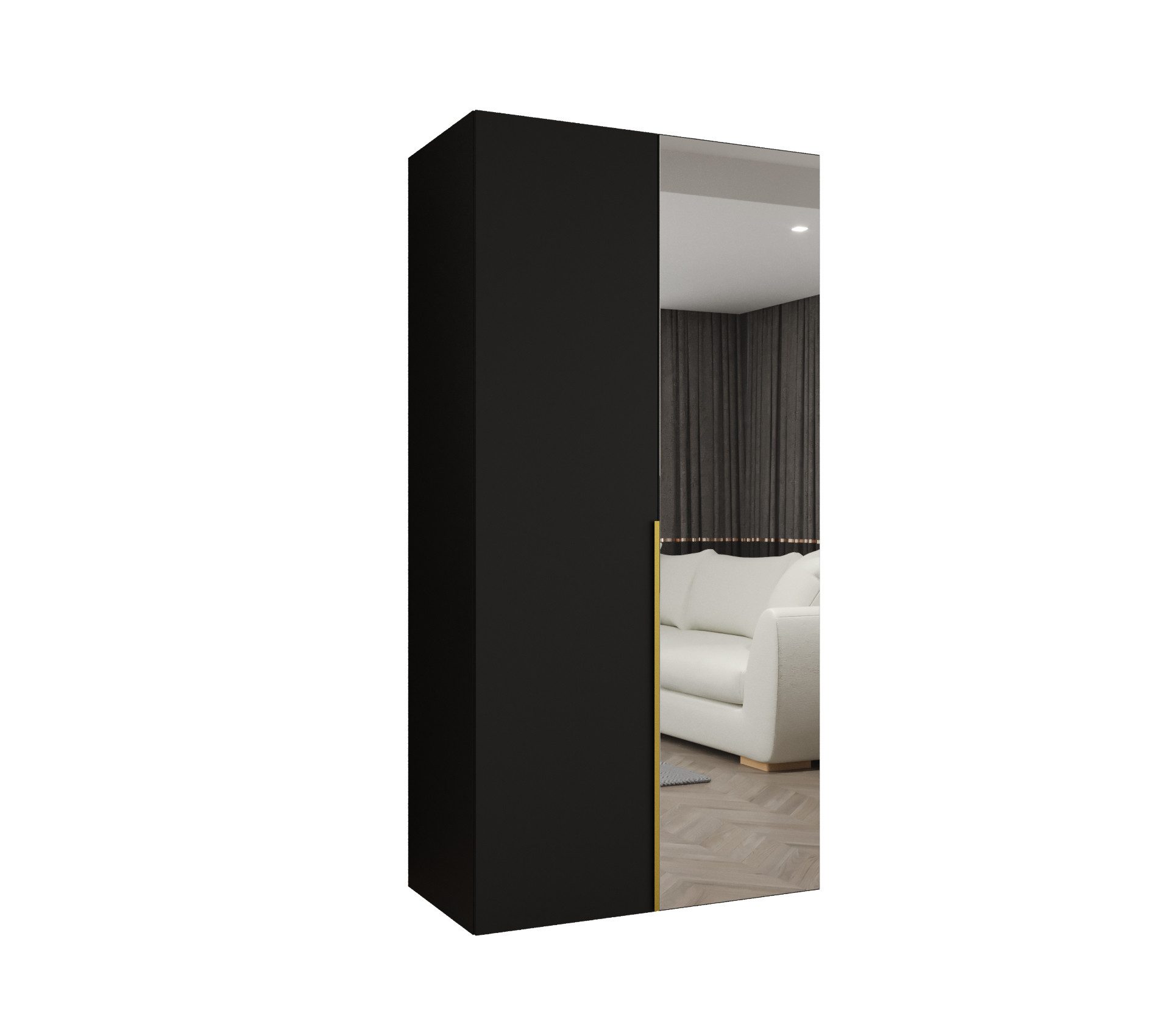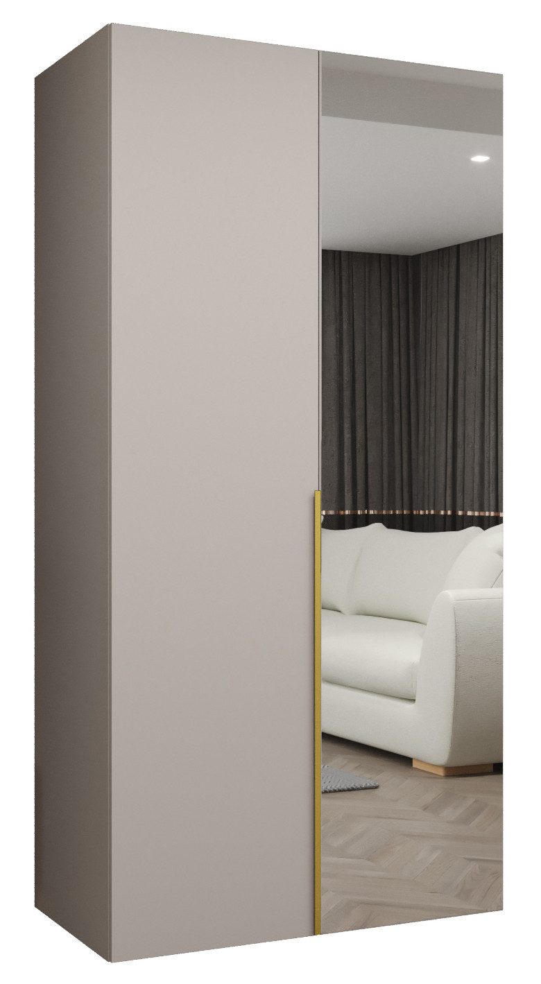 Technische Spezifikationen: Maße: Höhe: 202 cm, Breite: 100, 150, 200, 250 oder 300 cm, Tiefe: 52 cm . Die Aluminiumgriffe sind in drei Farben erhältlich: Schwarz, Gold oder Kaschmir. Im Inneren des Kleiderschranks befinden sich eine Kleiderstange und Regale.