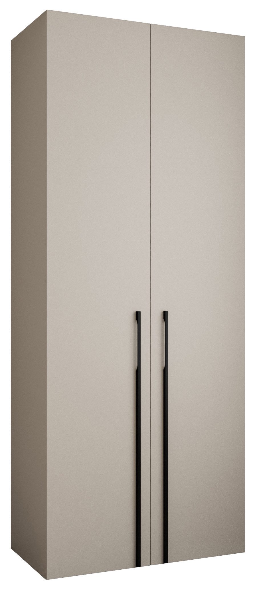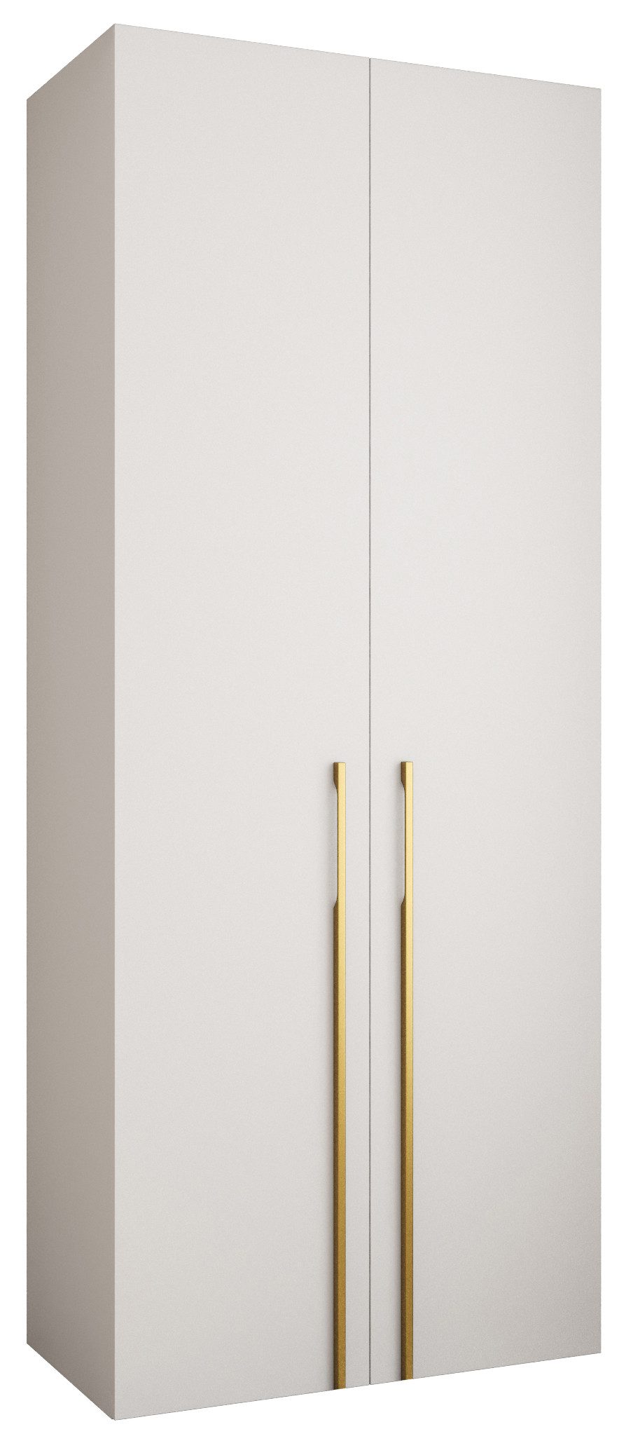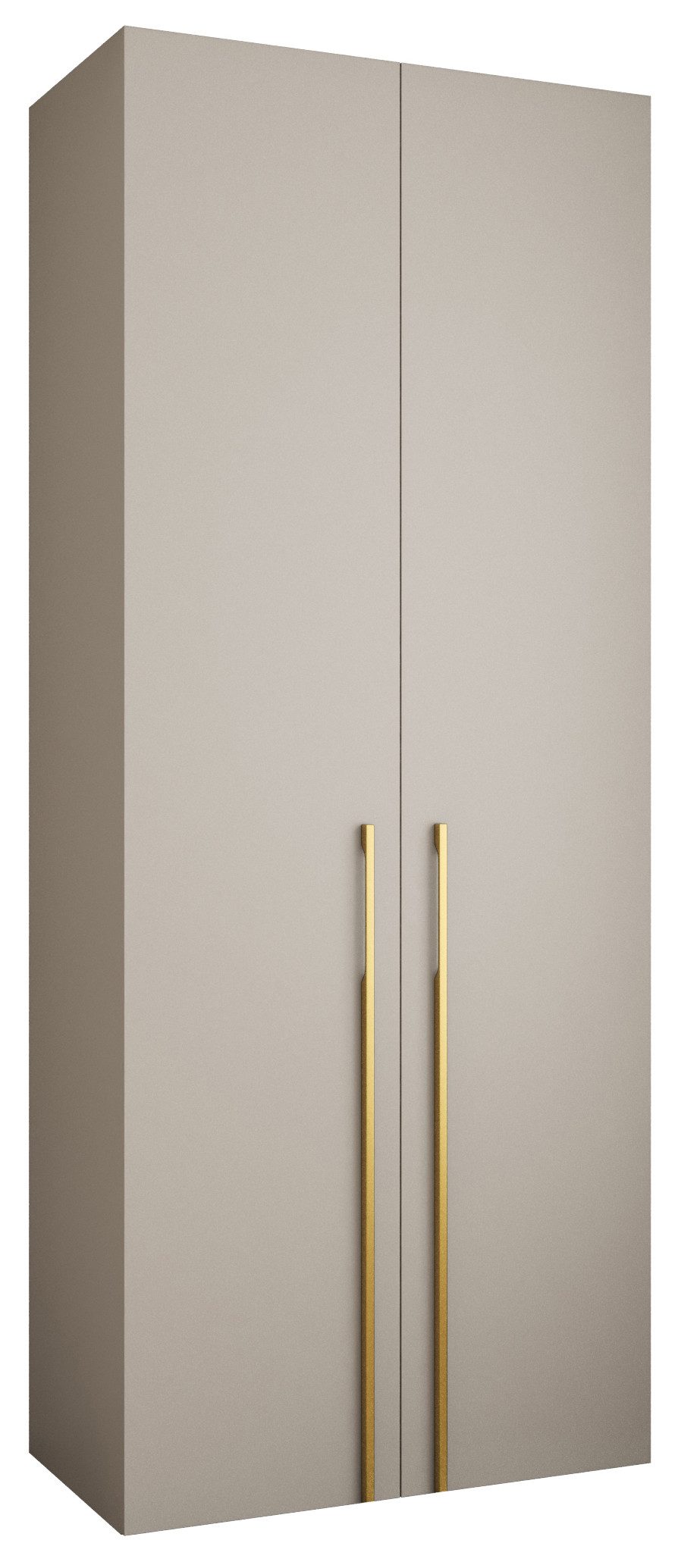 Technische Spezifikationen: Maße: Höhe: 245,5 cm, Breite: 100-200 cm, Tiefe: 40-50 cm . Die Stahlgriffe sind in zwei Farben erhältlich: Schwarz und Gold. Im Inneren des Kleiderschranks befinden sich eine Kleiderstange und Regale.