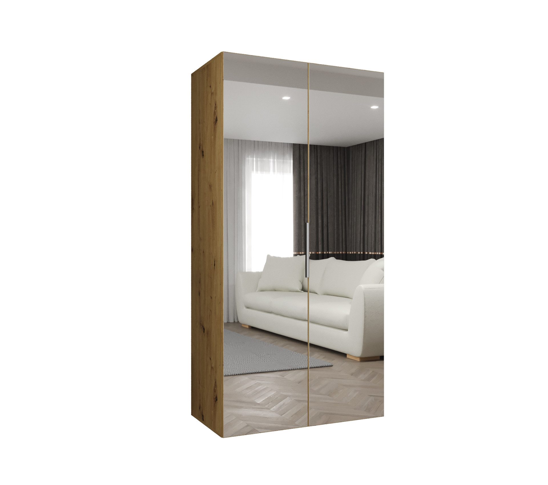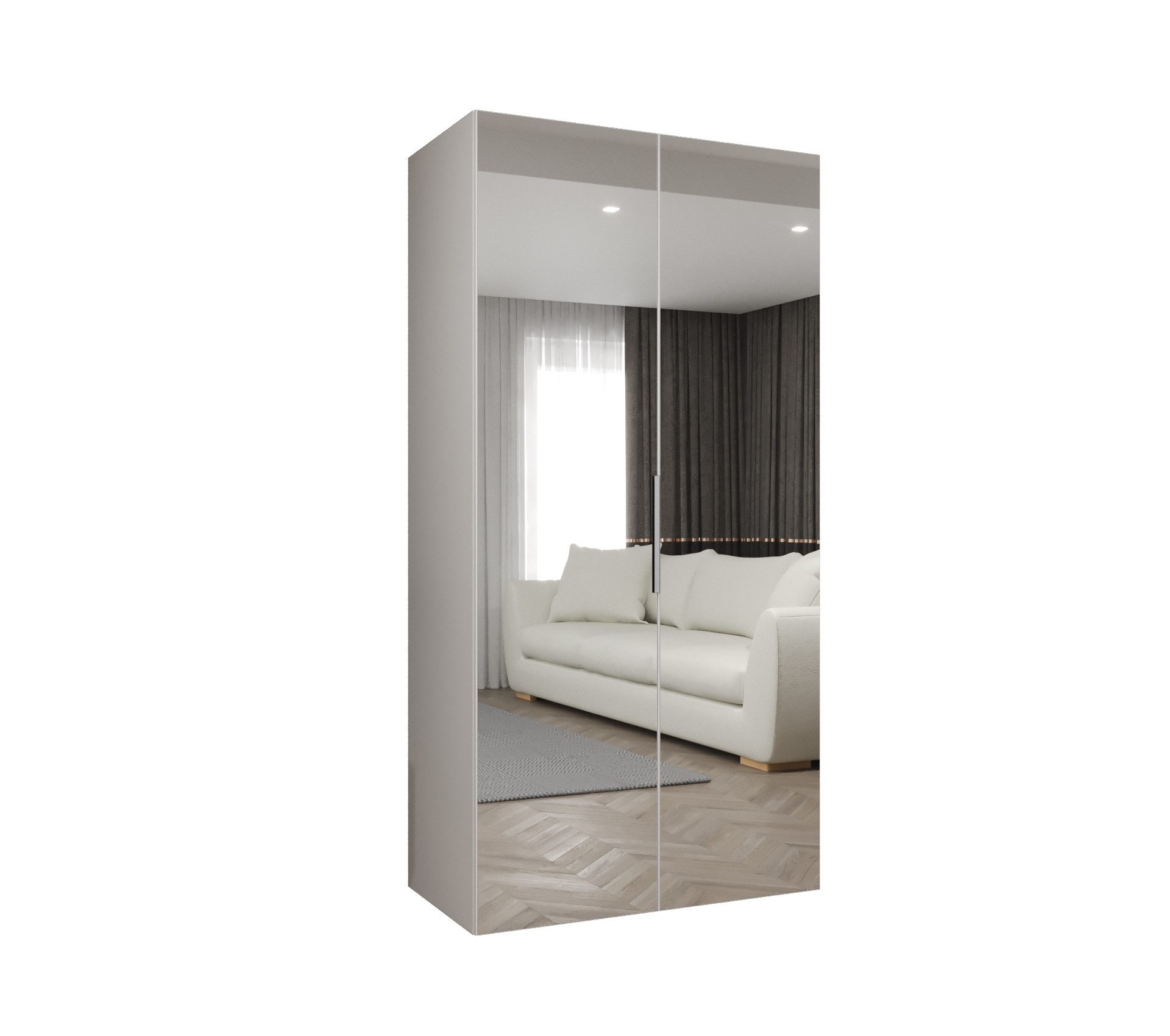 Technische Spezifikationen: Maße: Höhe: 202 cm, Breite: 100, 150, 200, 250 oder 300 cm, Tiefe: 52 cm . Die Aluminiumgriffe sind in drei Farben erhältlich: Schwarz, Gold oder Kaschmir. Im Inneren des Kleiderschranks befinden sich eine Kleiderstange und Regale.
