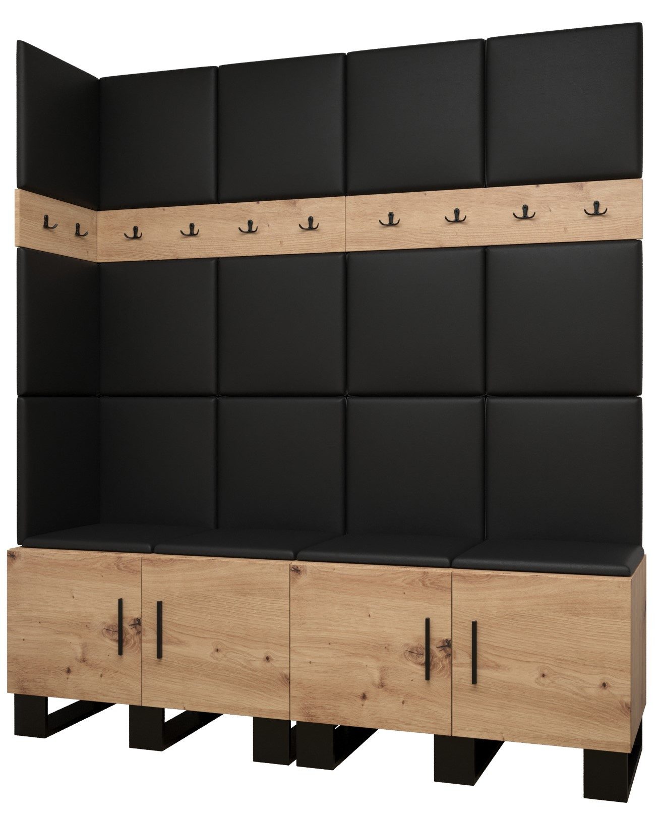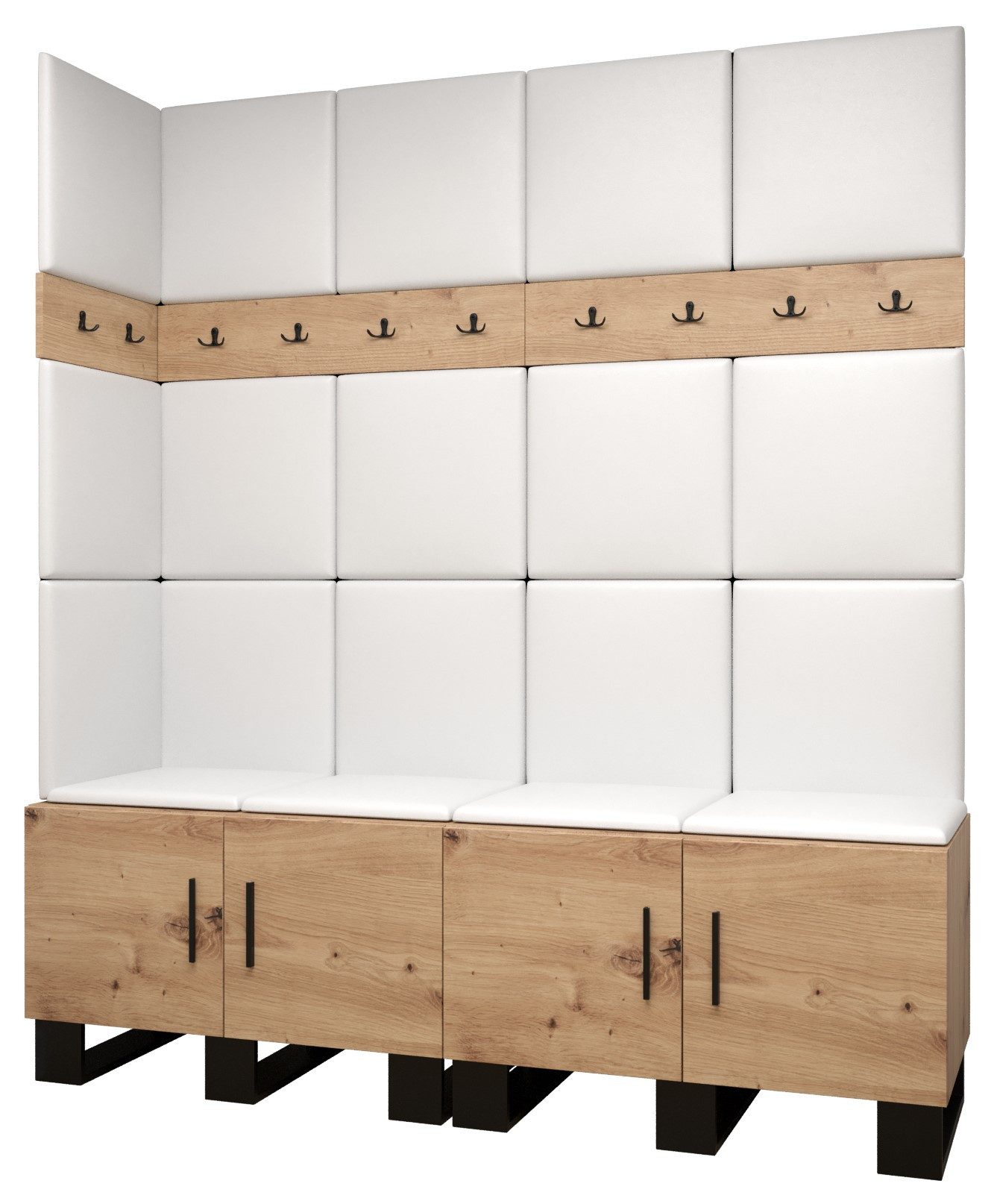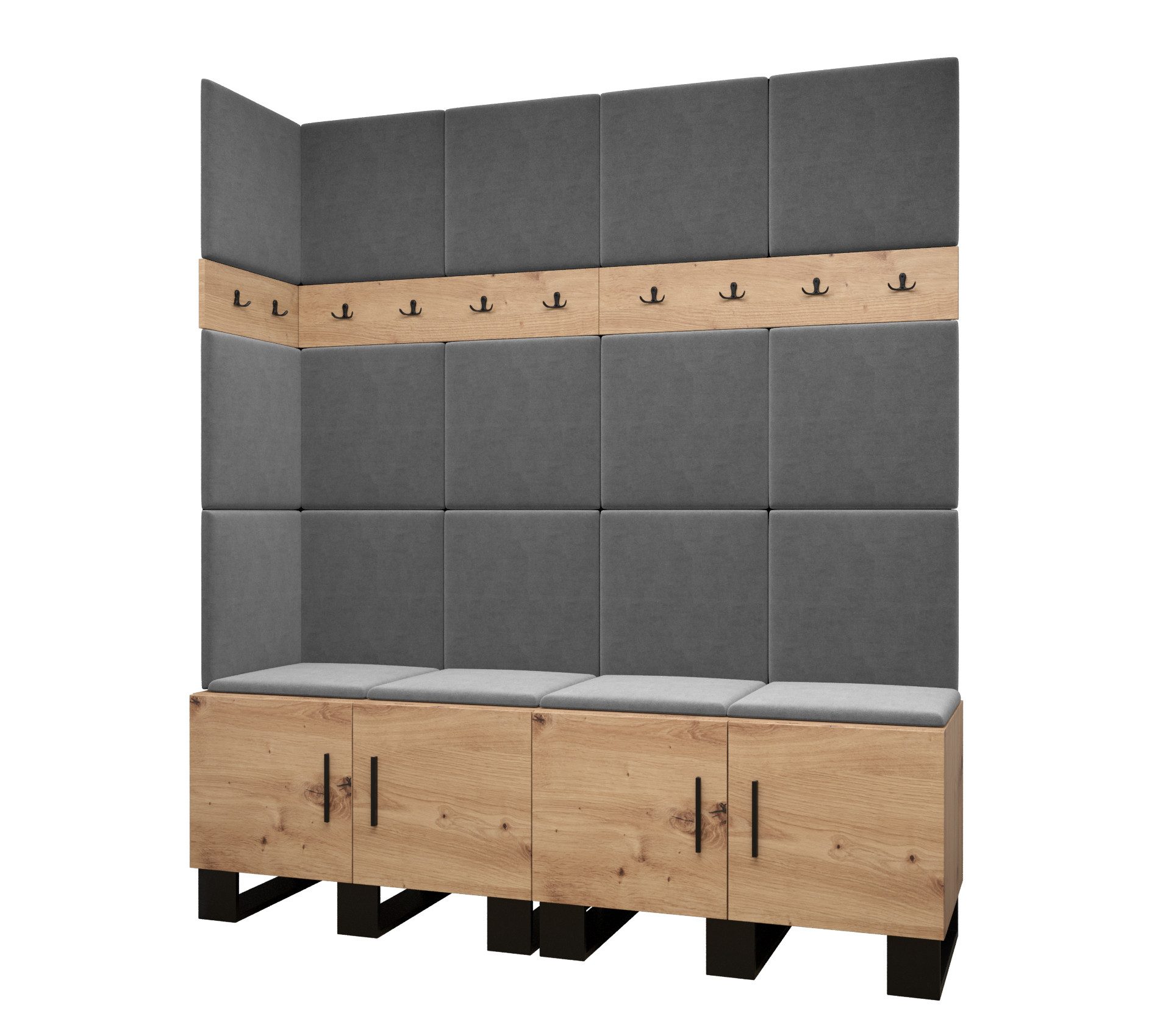 Viel Platz: Der ARTIN-Garderobe ist ein Möbelstück im modernen Stil mit modischen Polsterpaneelen, eine große Anzahl von Regalen und Kleiderbügeln verleihen dem Kleiderschrank außergewöhnliche Funktionalität. Elegantes Design und eine große Auswahl an Paneelfarben ermöglichen es Ihnen, die Garderobe in Ihrem Flur frei zu gestalten!