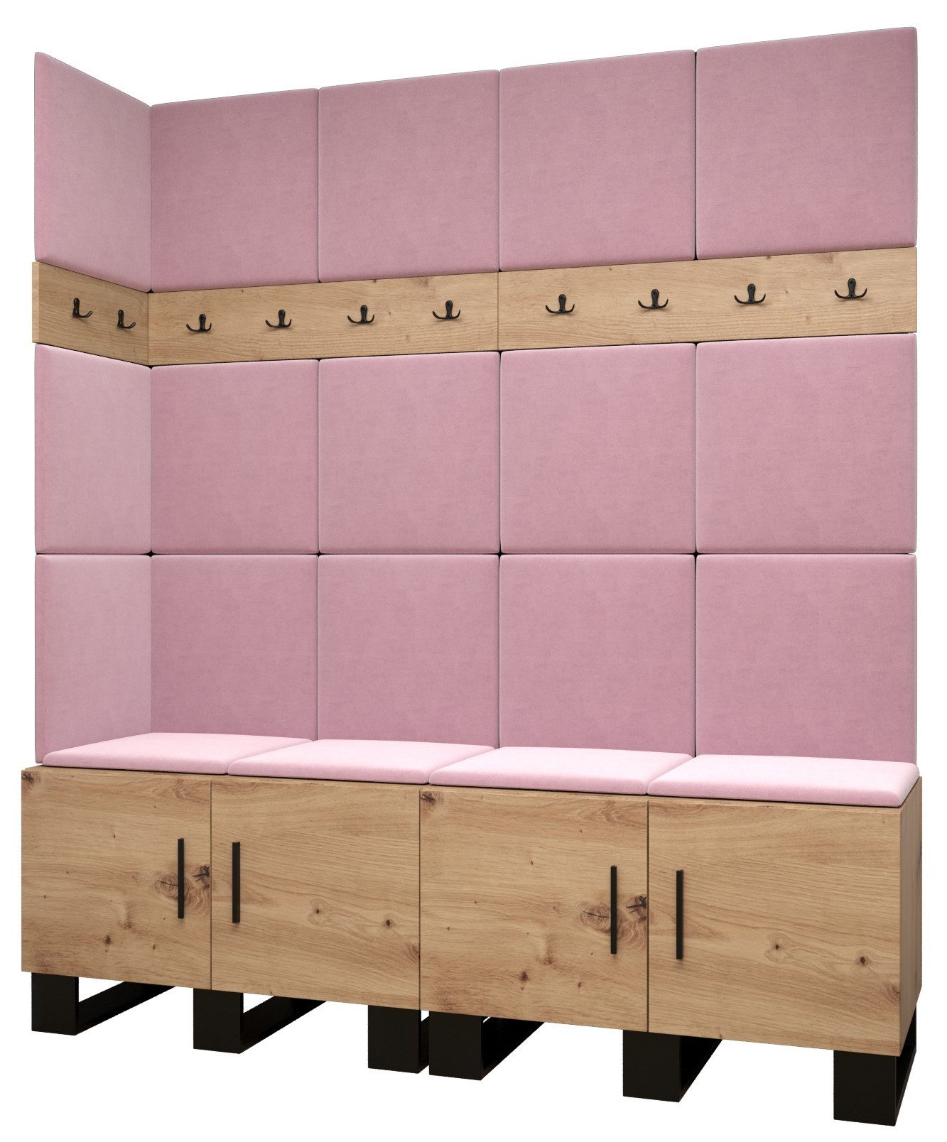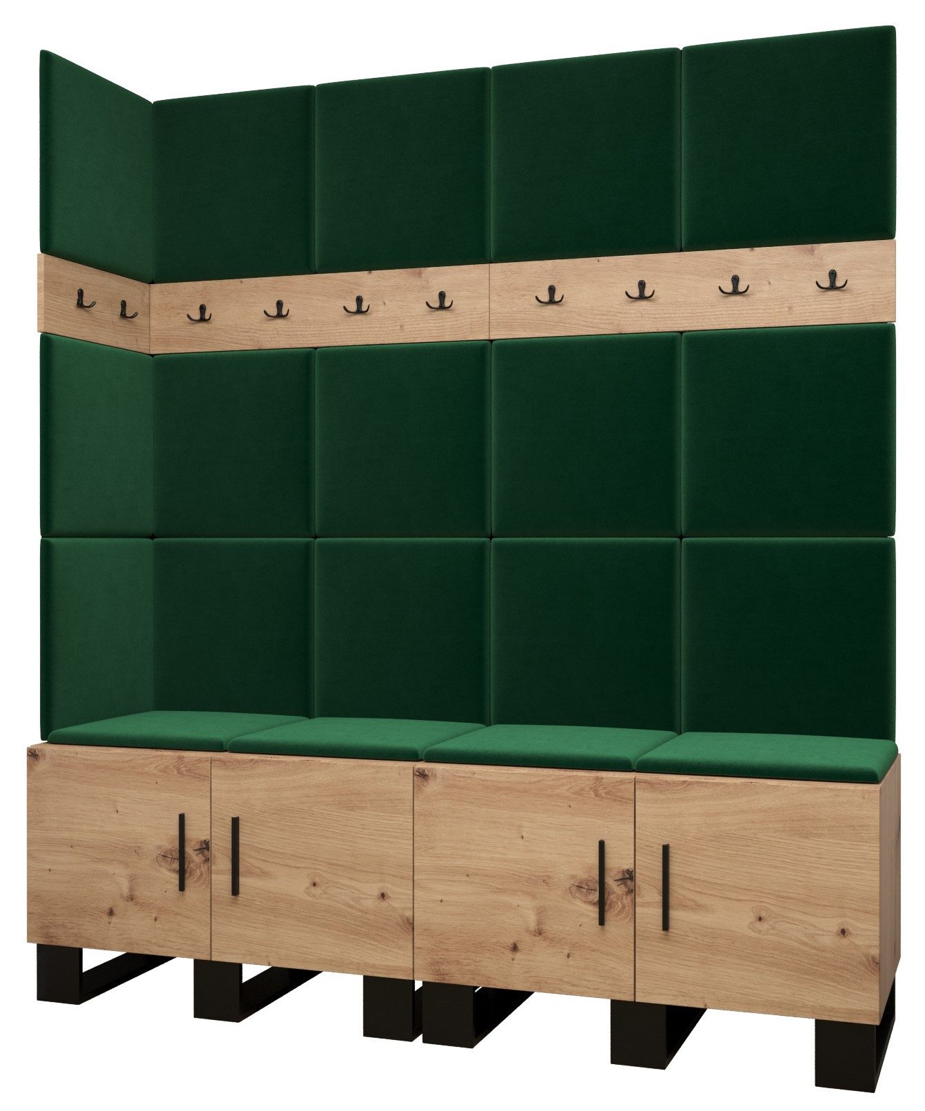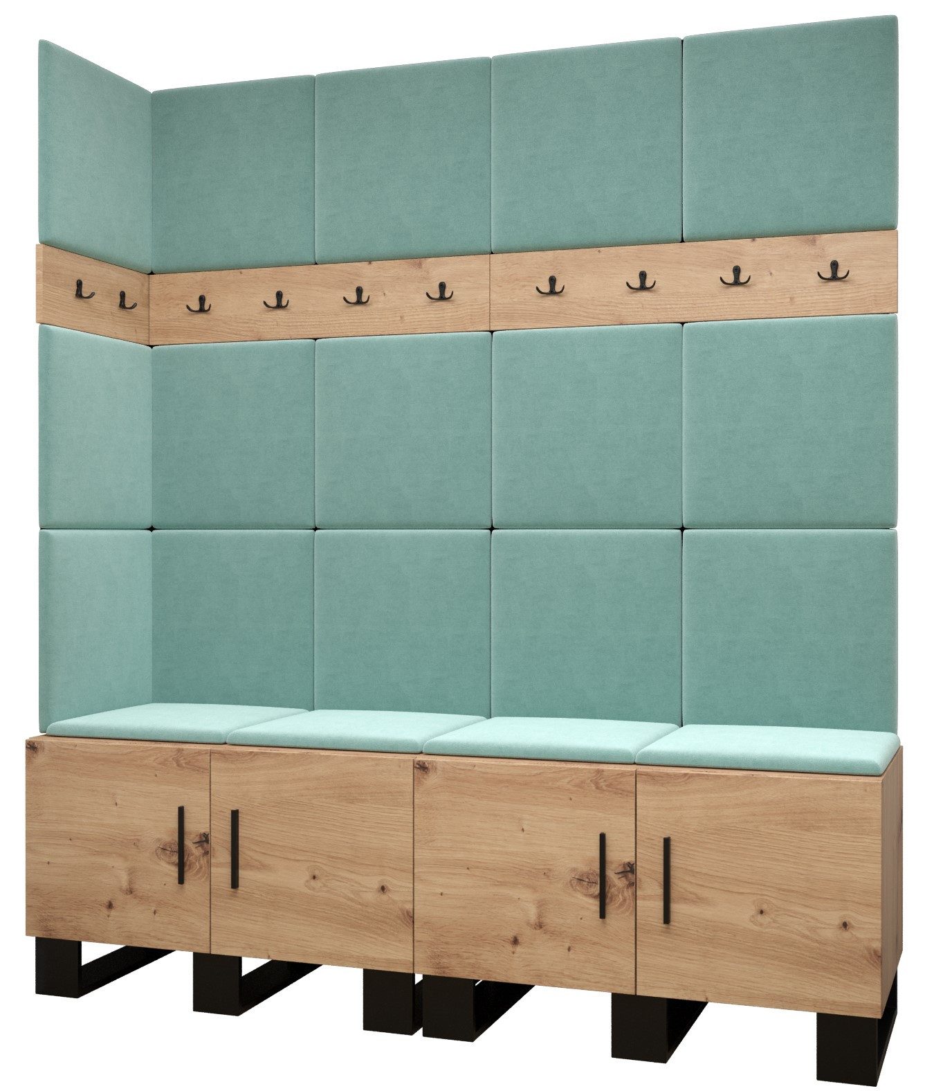 Viel Platz: Der ARTIN-Garderobe ist ein Möbelstück im modernen Stil mit modischen Polsterpaneelen, eine große Anzahl von Regalen und Kleiderbügeln verleihen dem Kleiderschrank außergewöhnliche Funktionalität. Elegantes Design und eine große Auswahl an Paneelfarben ermöglichen es Ihnen, die Garderobe in Ihrem Flur frei zu gestalten!