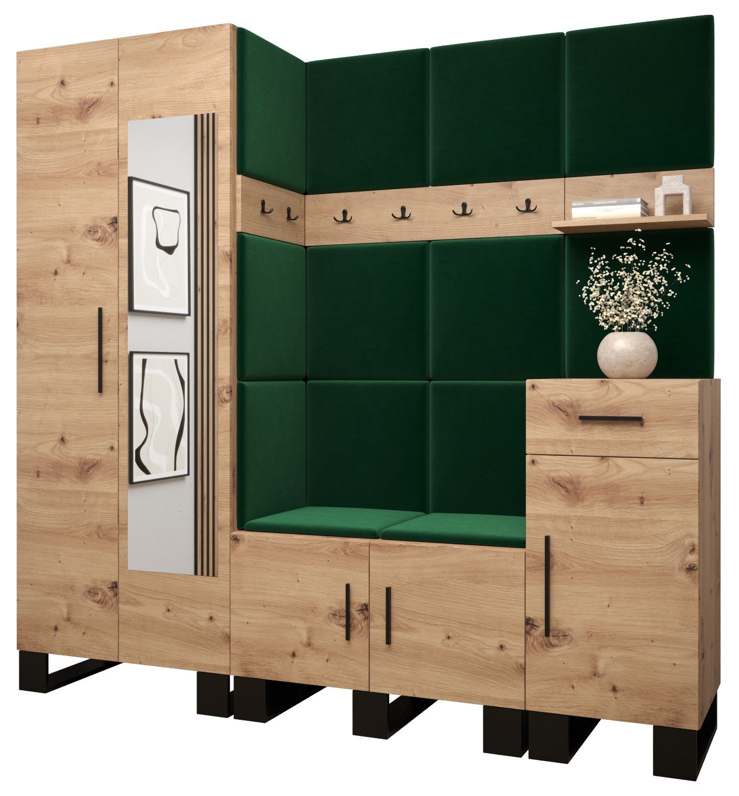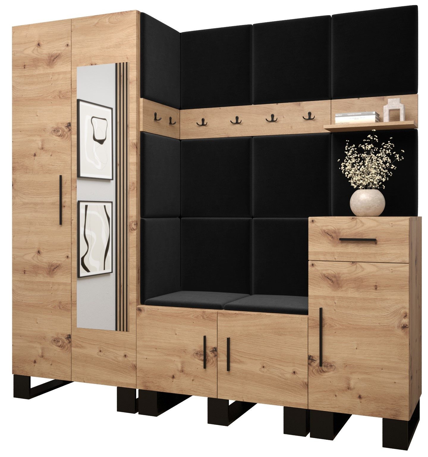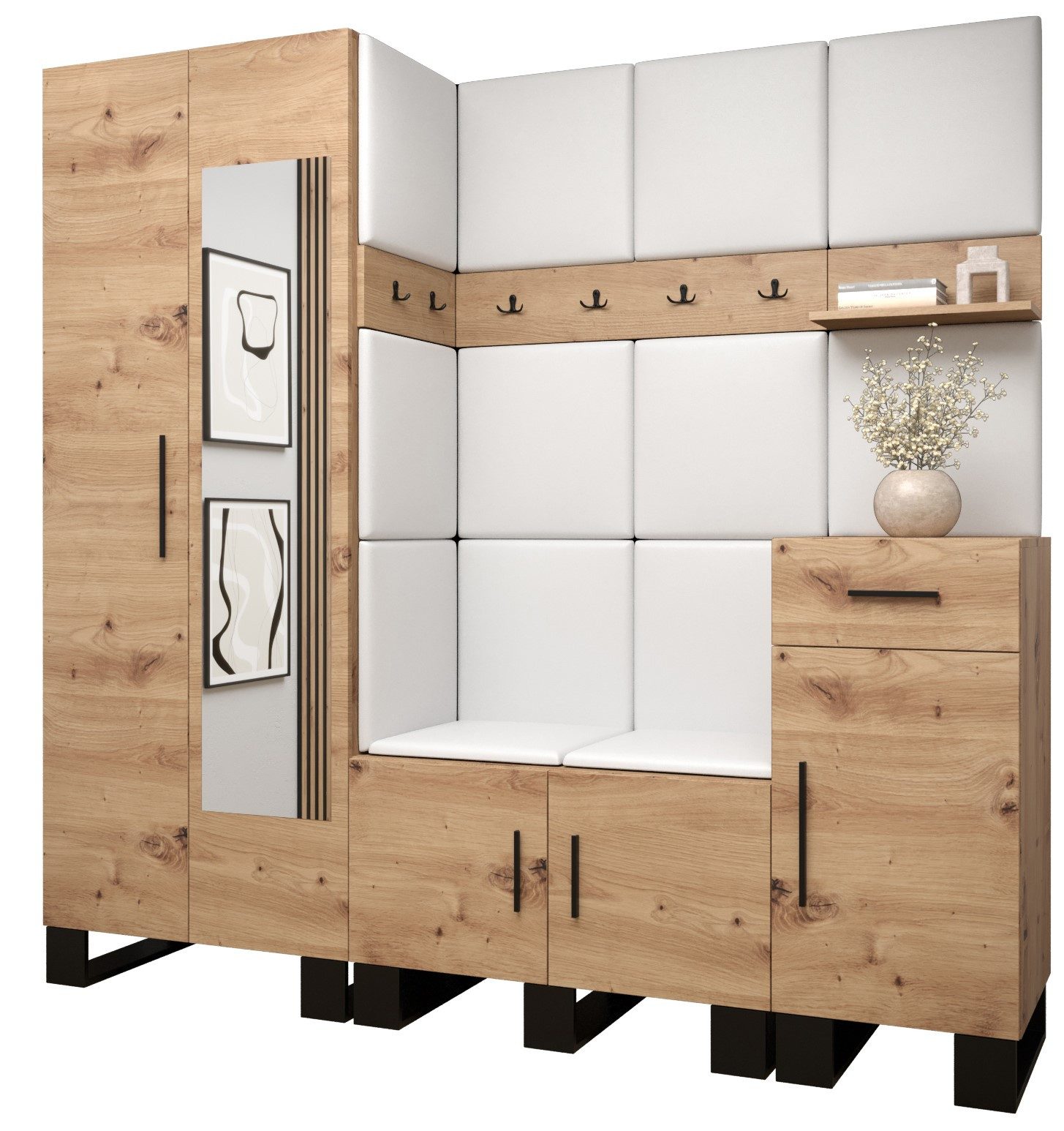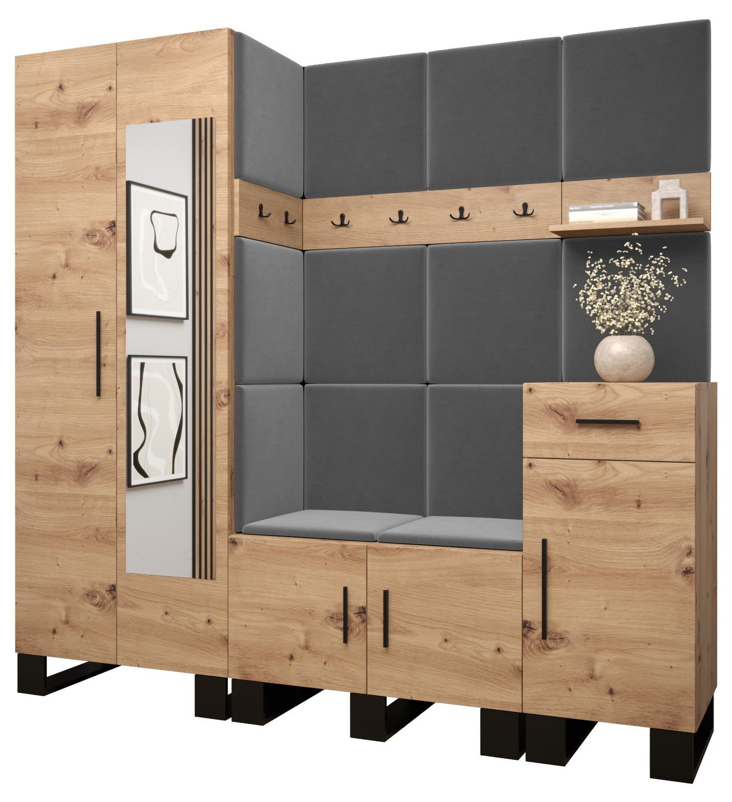 Viel Platz: Der ARTIN-Garderobe ist ein Möbelstück im modernen Stil mit modischen Polsterpaneelen, eine große Anzahl von Regalen und Kleiderbügeln verleihen dem Kleiderschrank außergewöhnliche Funktionalität. Elegantes Design und eine große Auswahl an Paneelfarben ermöglichen es Ihnen, die Garderobe in Ihrem Flur frei zu gestalten!