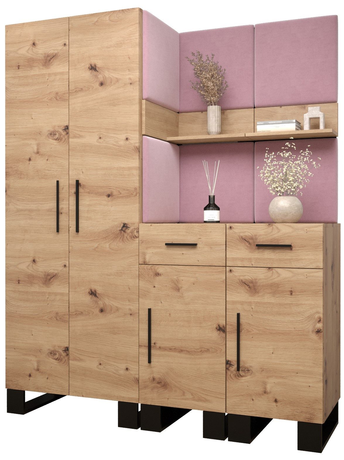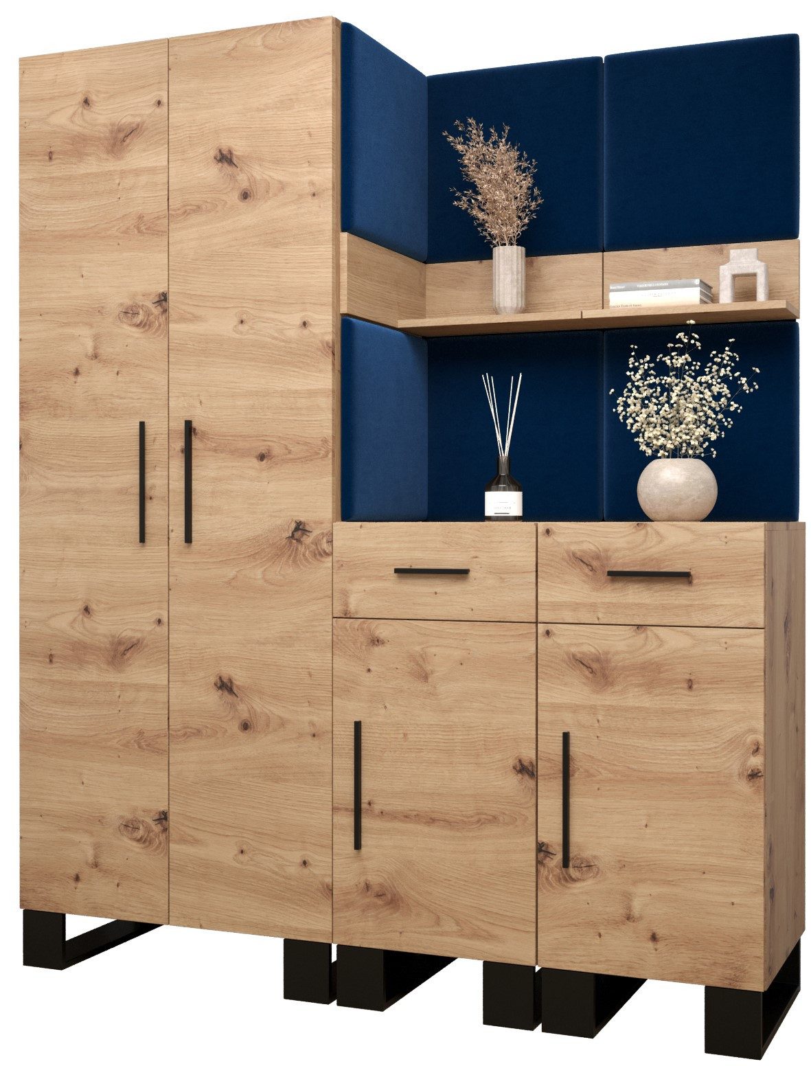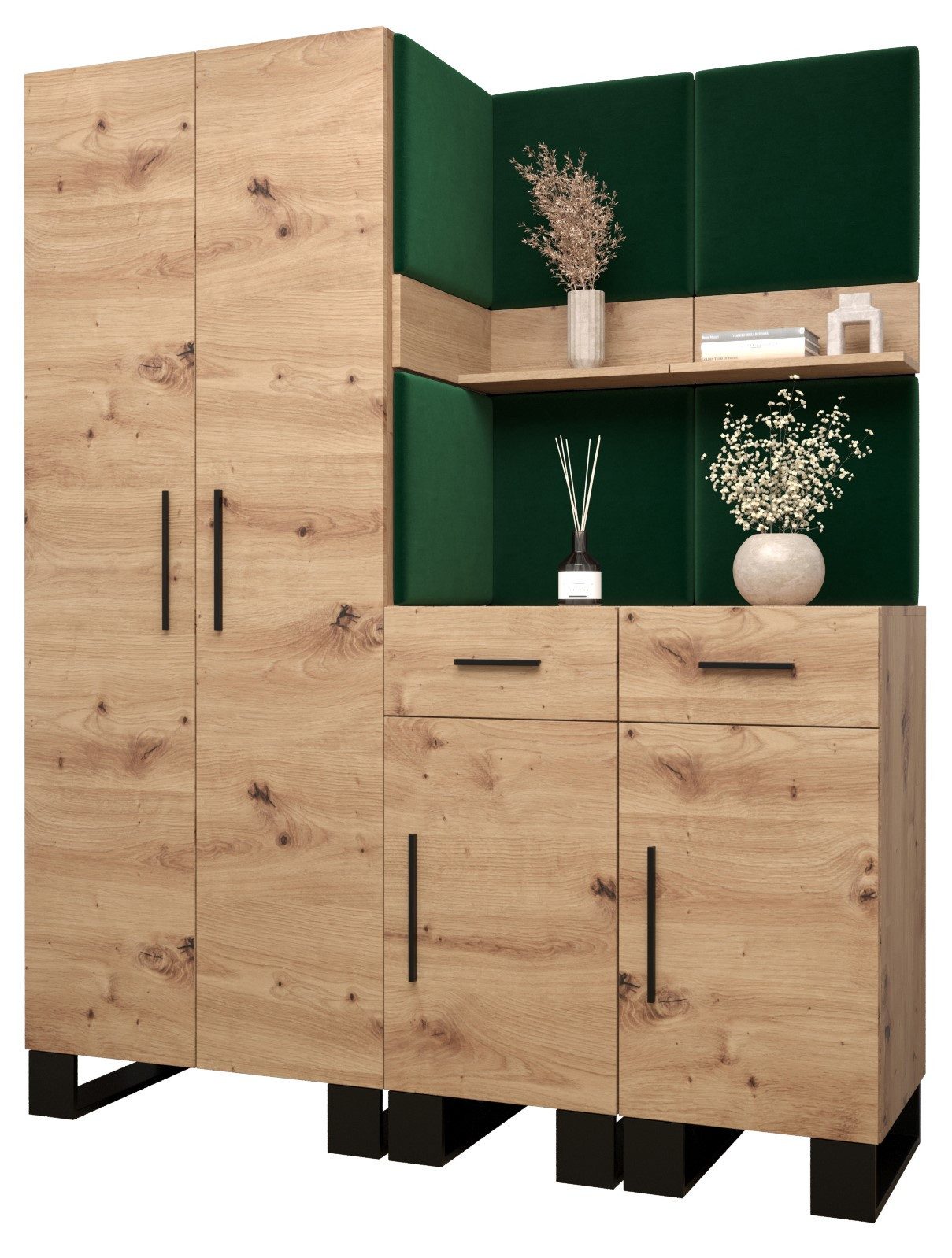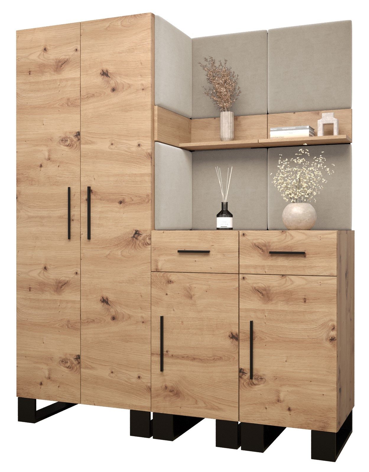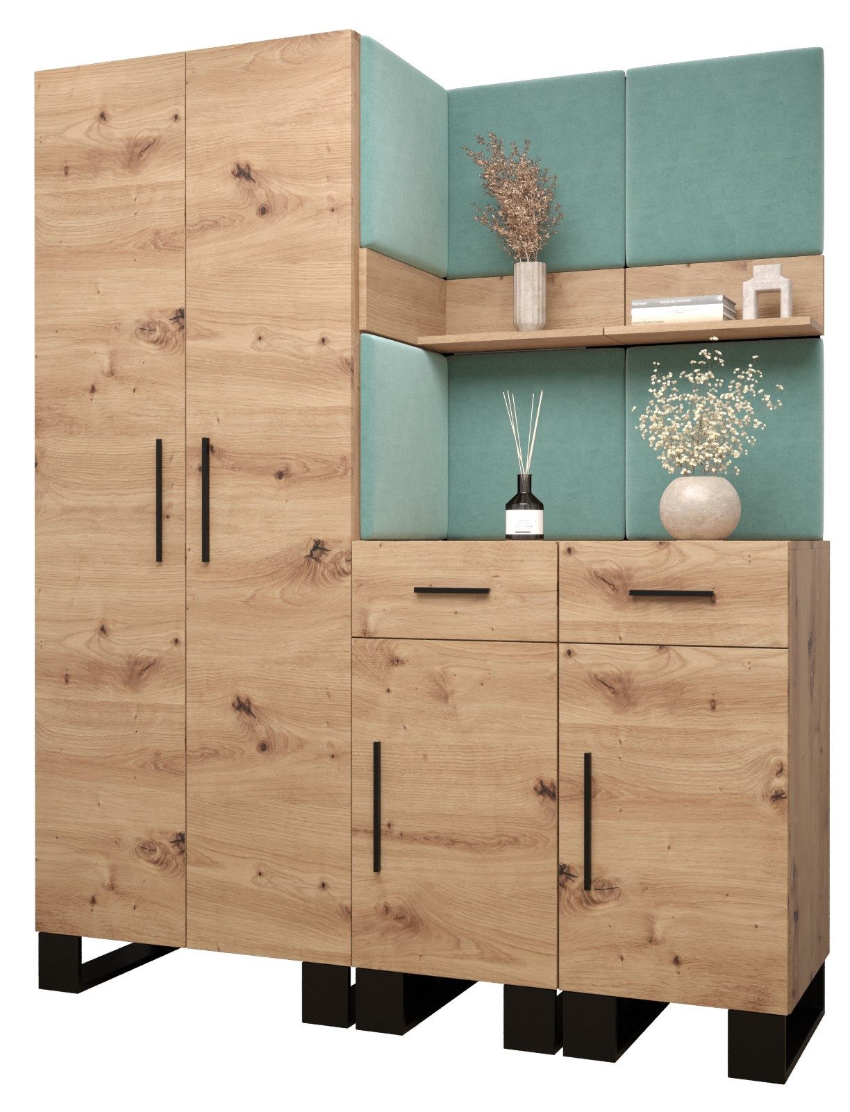 Viel Platz: Der ARTIN-Garderobe ist ein Möbelstück im modernen Stil mit modischen Polsterpaneelen, eine große Anzahl von Regalen und Kleiderbügeln verleihen dem Kleiderschrank außergewöhnliche Funktionalität. Elegantes Design und eine große Auswahl an Paneelfarben ermöglichen es Ihnen, die Garderobe in Ihrem Flur frei zu gestalten!