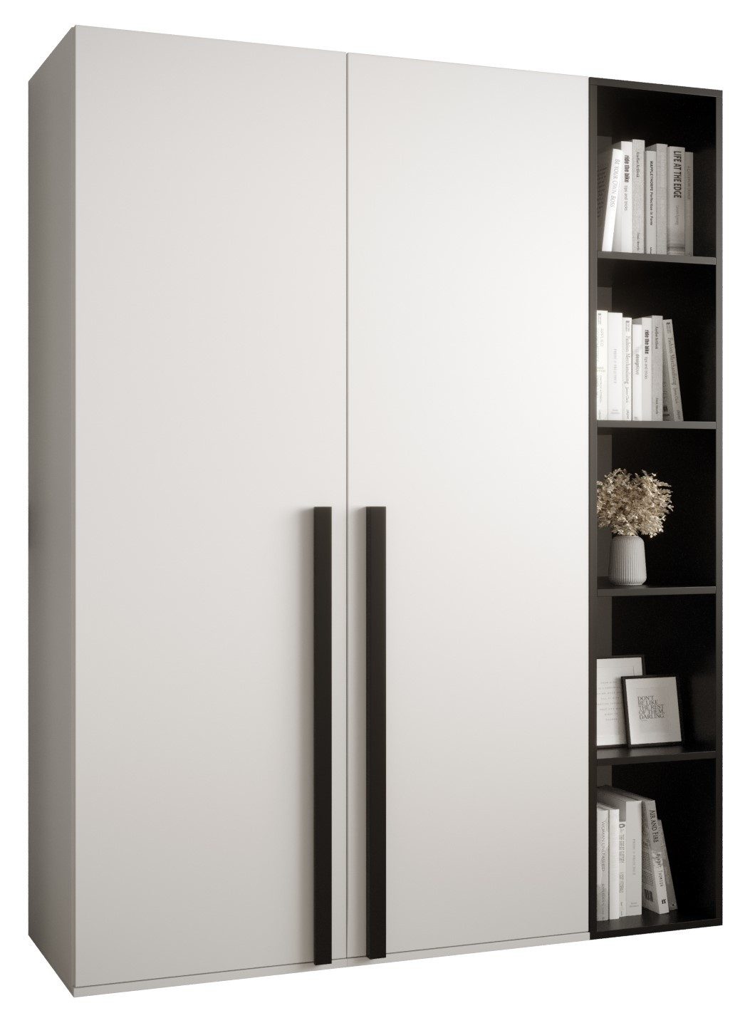 Technische Spezifikationen: Höhe: 184 cm, Breite: 130 cm, Tiefe: 42 cm. Erhältliche Farben des Korpus: Eiche Kraft Gold und Weiß. Farbe des Griffs: Mattschwarz.