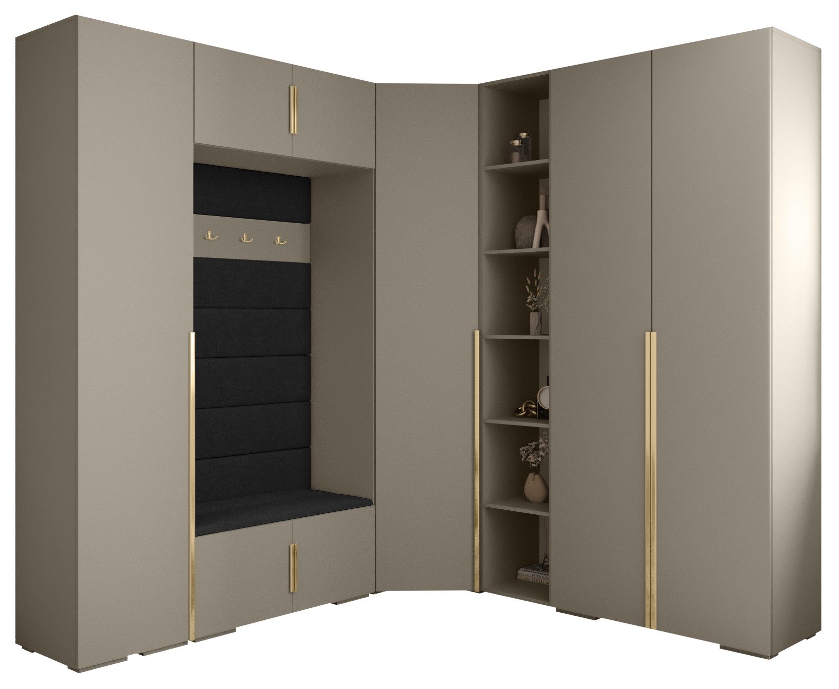 Technische Spezifikationen: Höhe: 236,7 cm, Breite: 221,7 cm, Tiefe: 47 cm. Erhältliche Farben des Korpus: Mattschwarz, Mattweiß und Kaschmir. Erhältliche Farben des Griffs: Mattschwarz oder Mattgold.