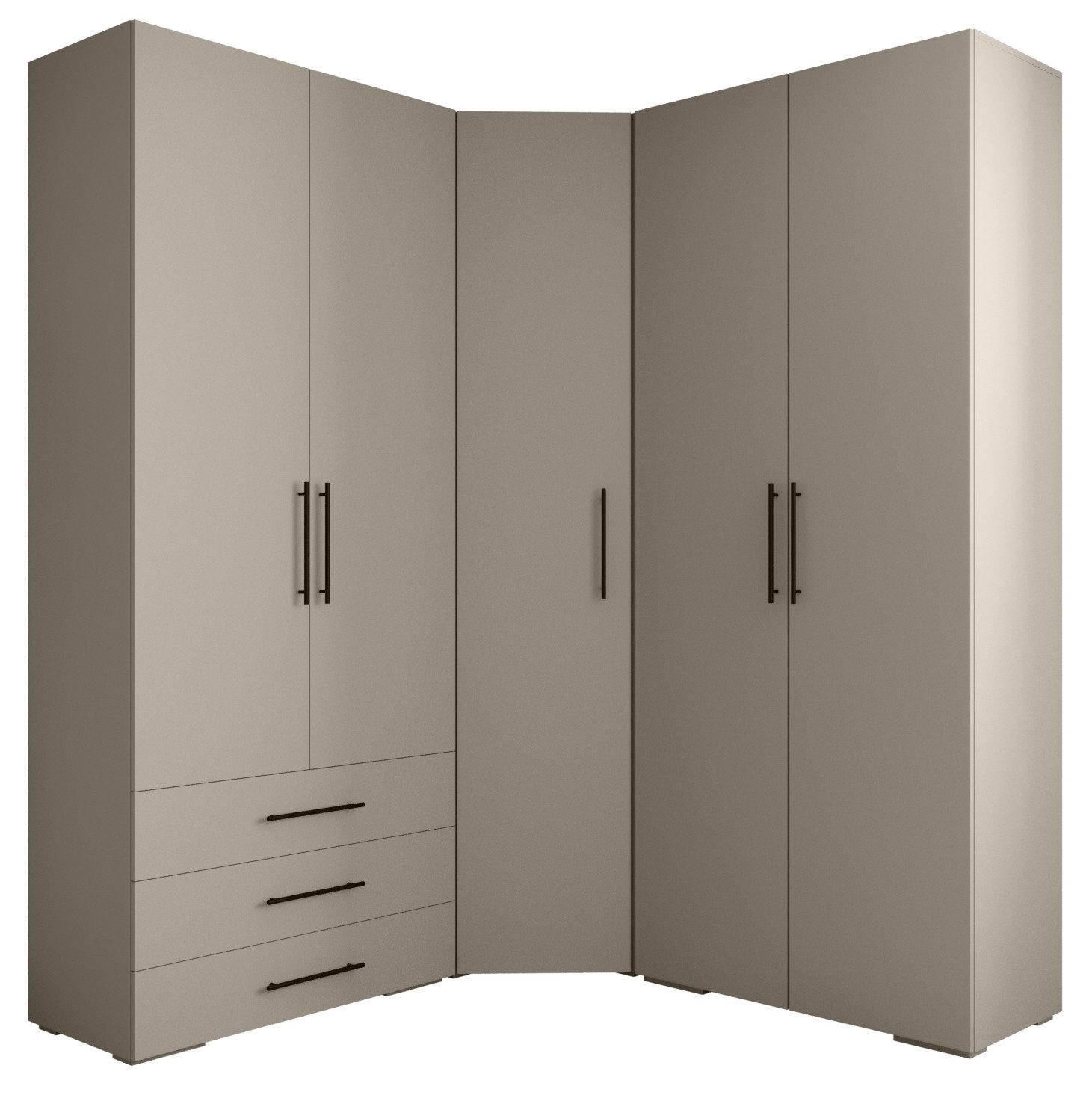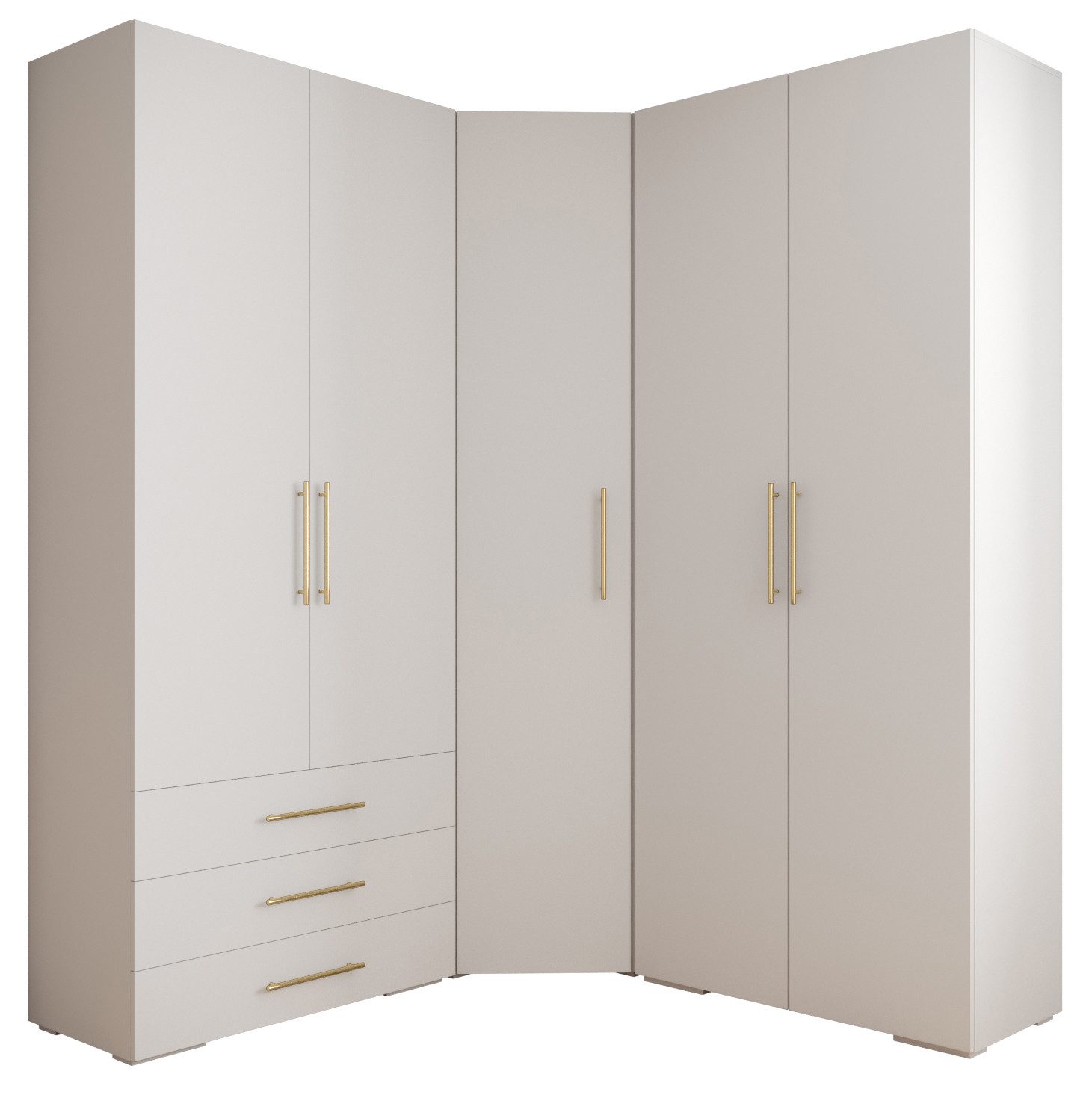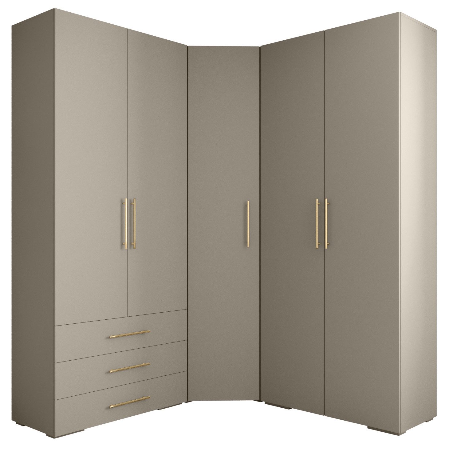 Technische Spezifikationen: Höhe: 236,7 cm, Breite: 181,7 cm, Tiefe: 47 cm. Erhältliche Farben des Korpus: Mattschwarz, Mattweiß und Kaschmir. Erhältliche Farben des Griffs: Mattschwarz oder Mattgold.