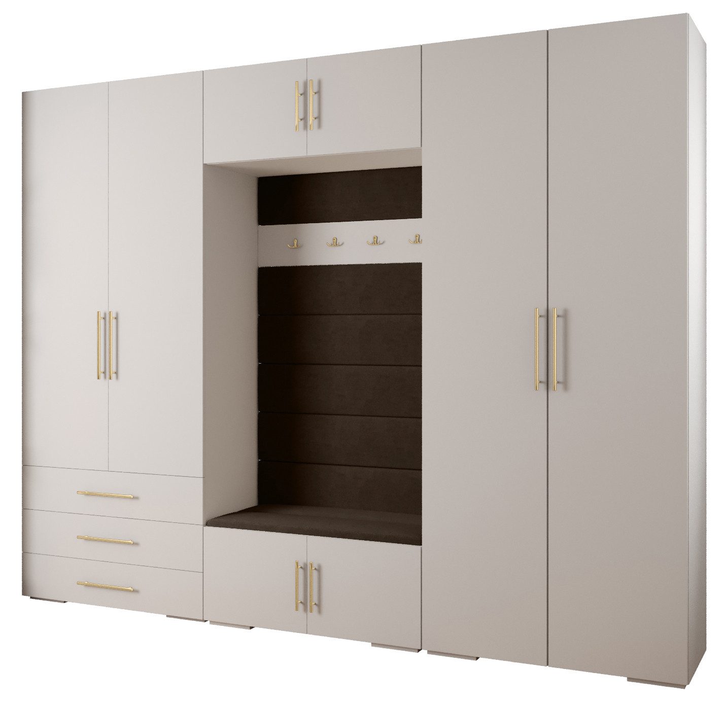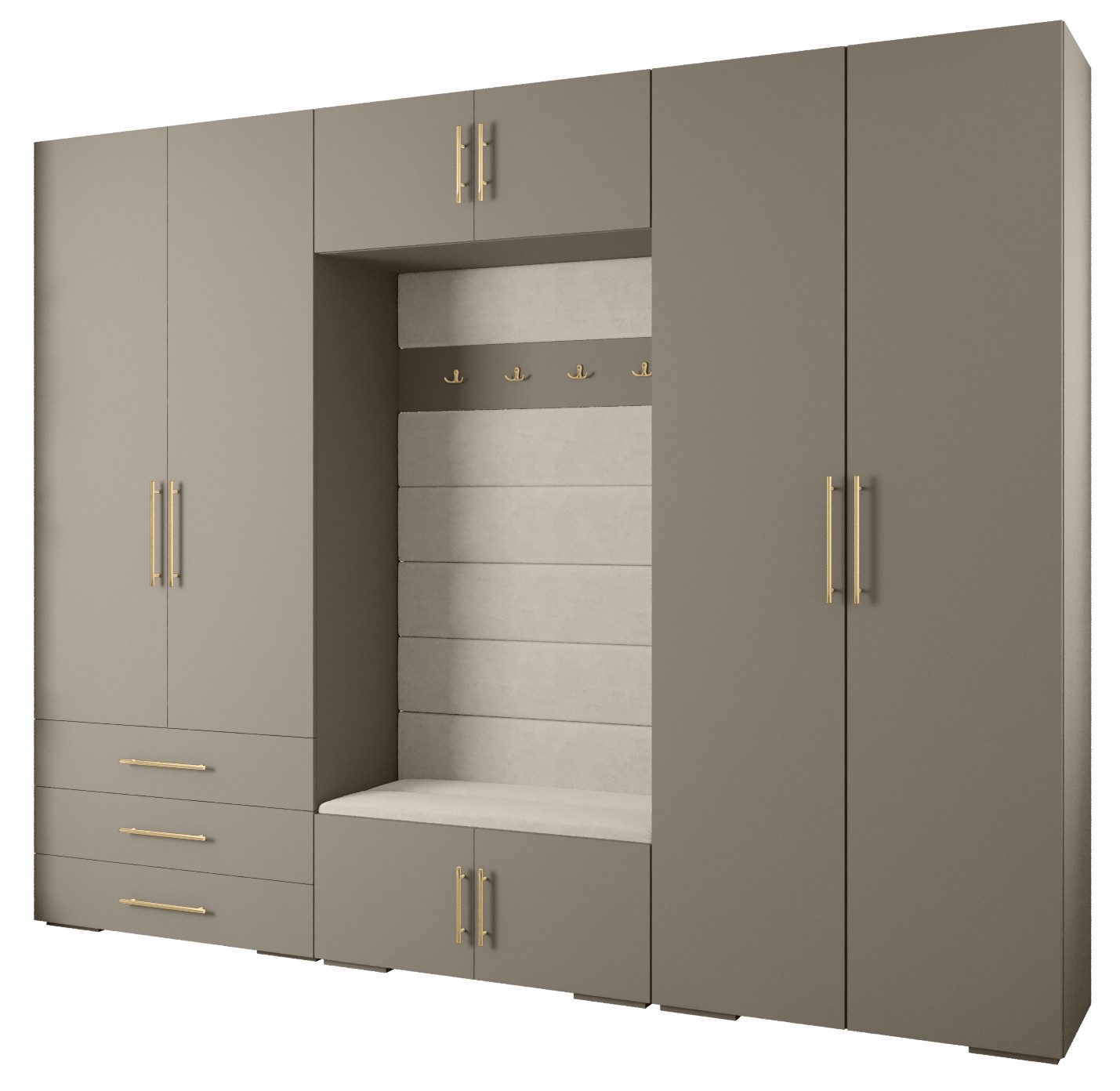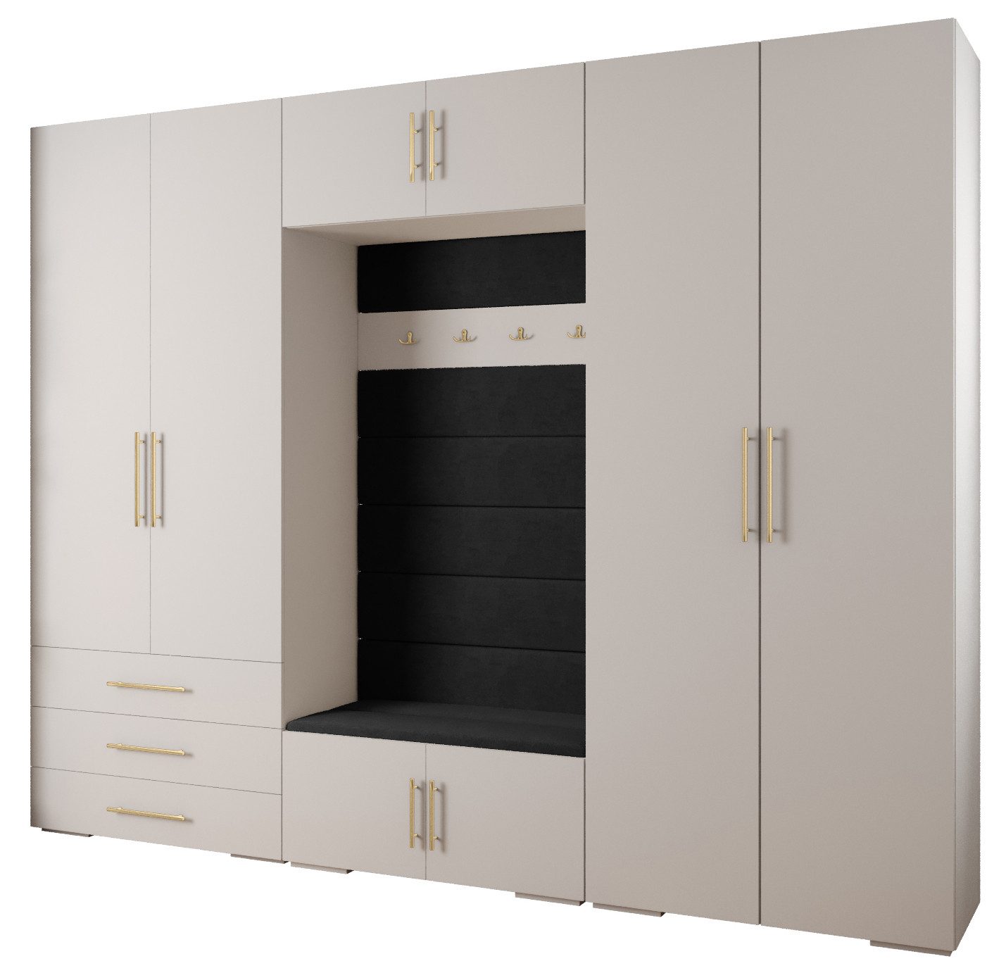 Technische Spezifikationen: Höhe: 236,7 cm, Breite: 300 cm, Tiefe: 47 cm. Erhältliche Farben des Korpus: Mattschwarz, Mattweiß und Kaschmir. Erhältliche Farben des Griffs: Mattschwarz oder Mattgold.
