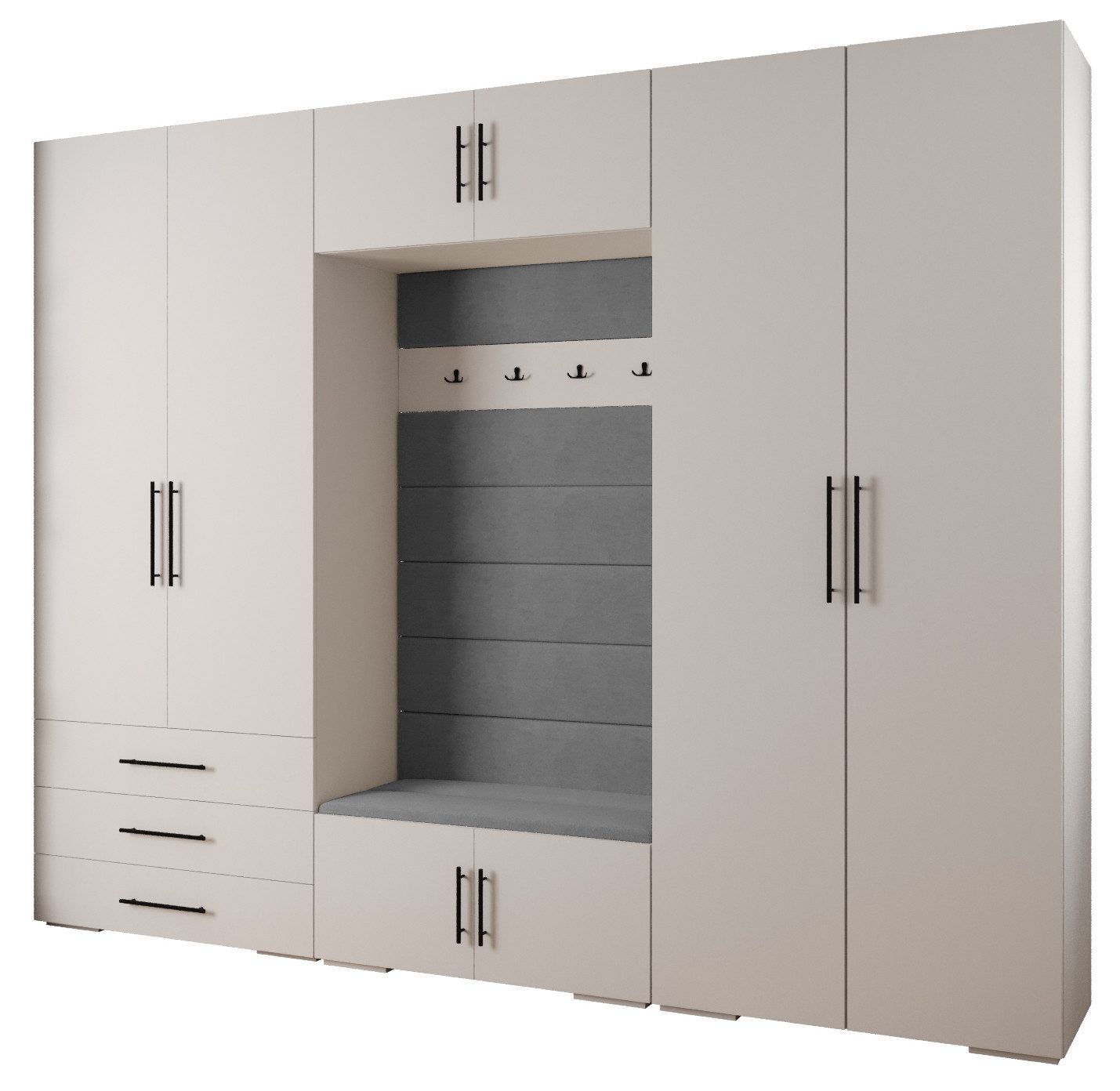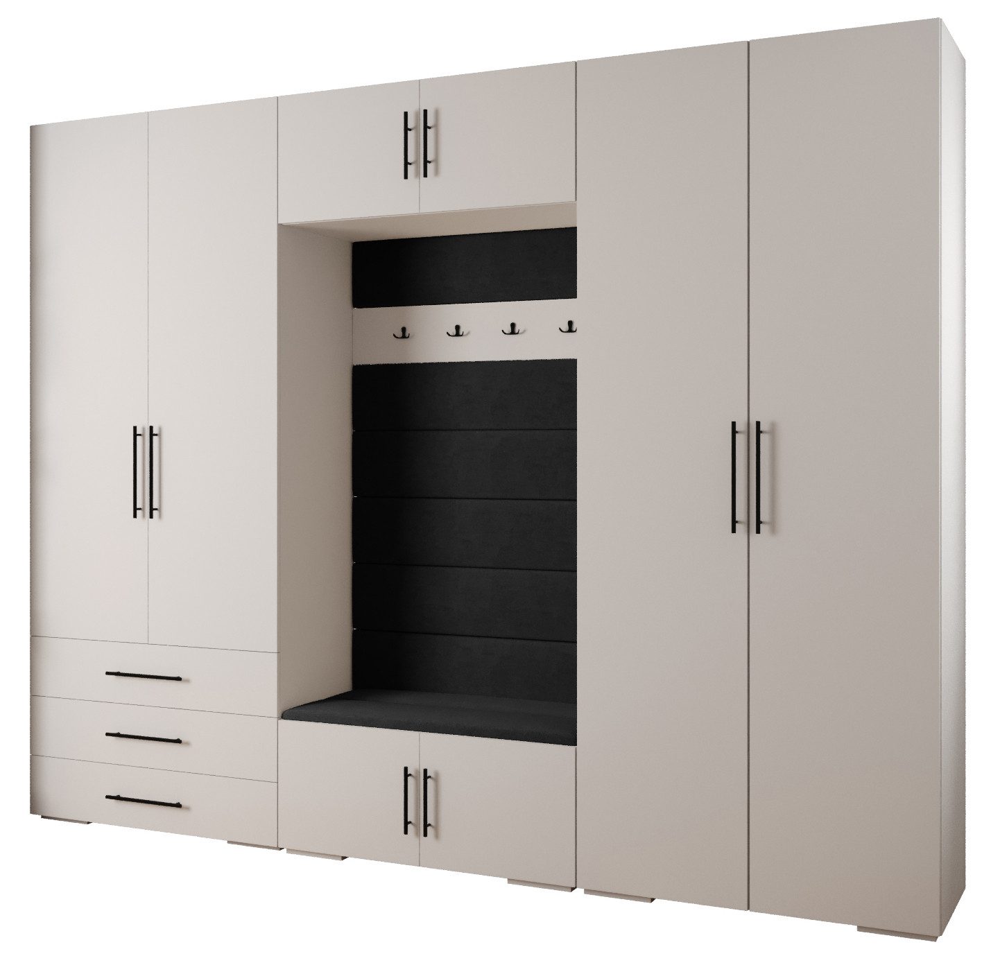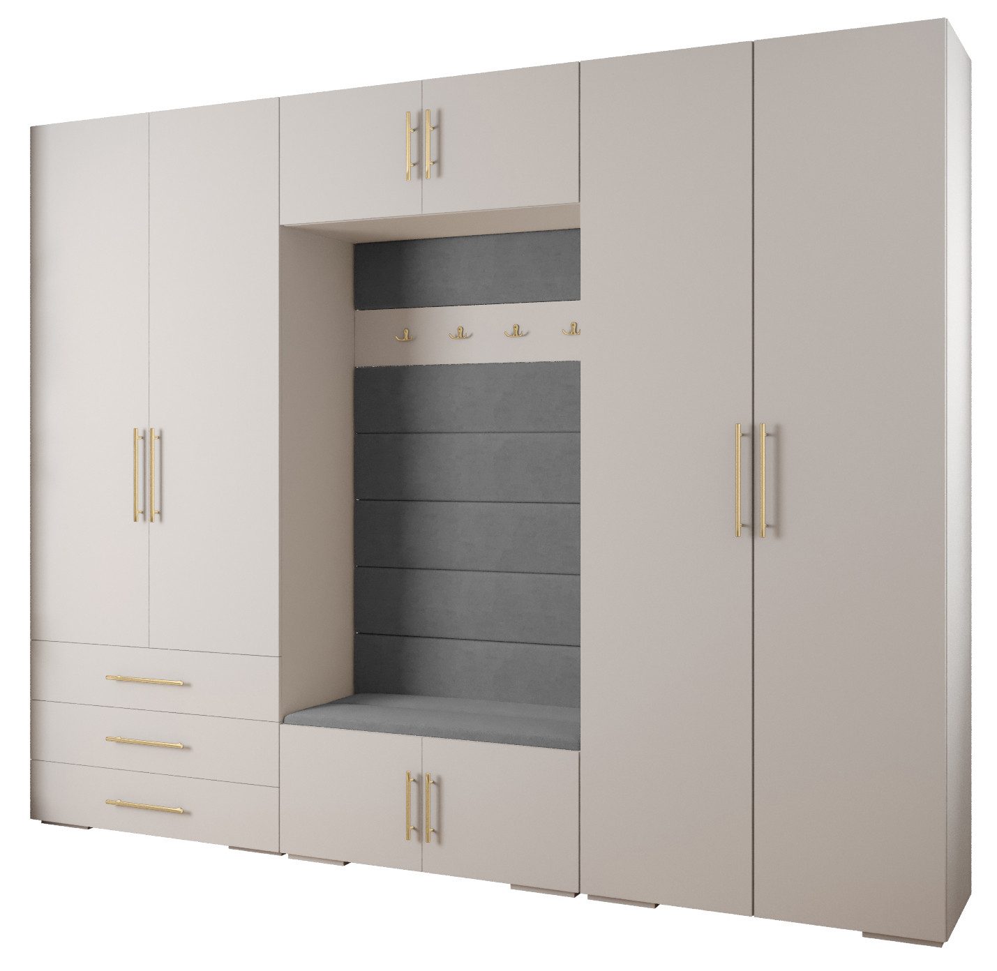 Technische Spezifikationen: Höhe: 236,7 cm, Breite: 300 cm, Tiefe: 47 cm. Erhältliche Farben des Korpus: Mattschwarz, Mattweiß und Kaschmir. Erhältliche Farben des Griffs: Mattschwarz oder Mattgold.