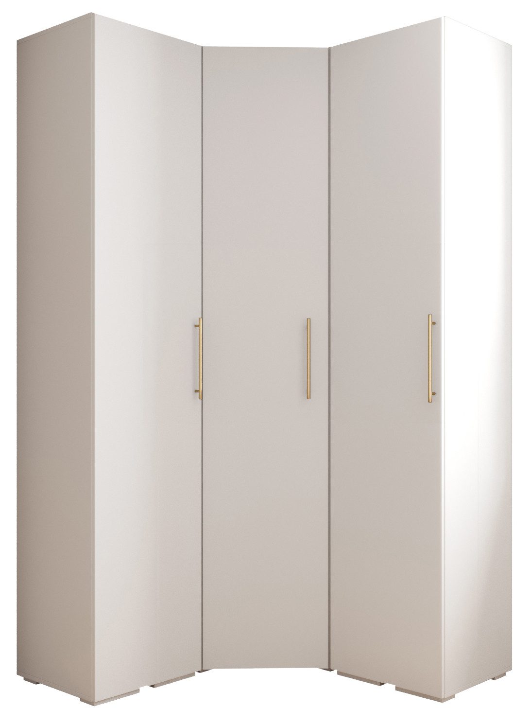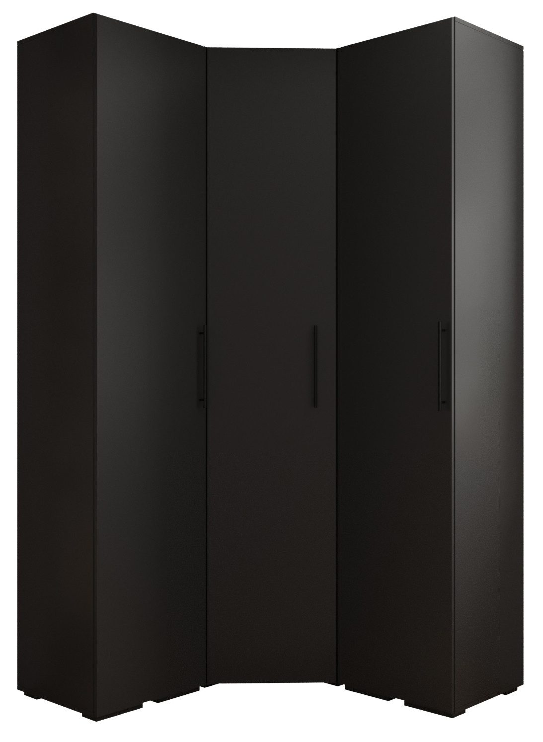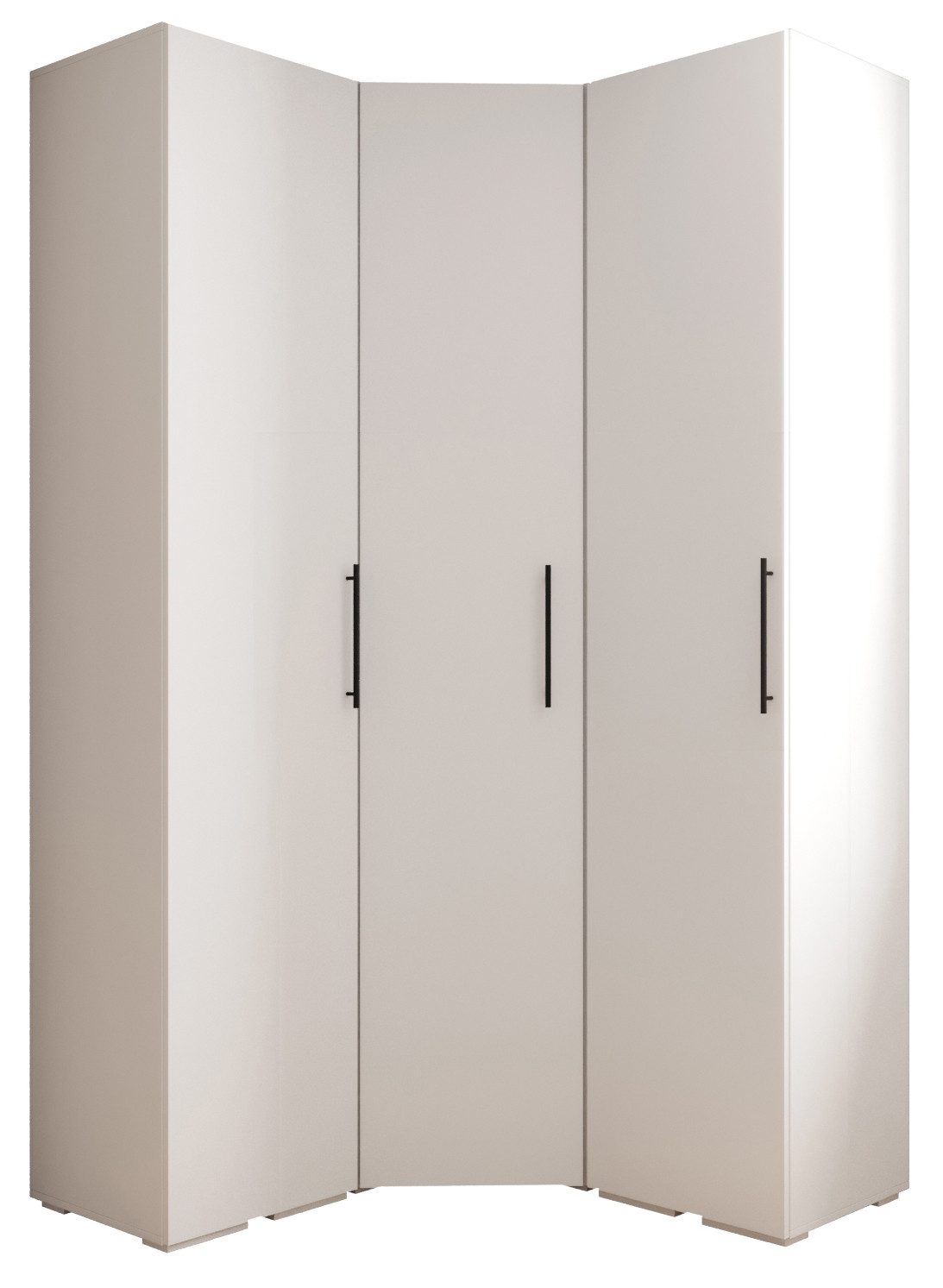 Viel Platz: Die Garderobe besteht aus einem Eckschrank mit 5 Regalböden links, zwei Regalböden rechts und unter jedem Regalboden eine Kleiderstange zum Aufhängen der Kleidung sowie einem Schrank mit zwei Regalböden oben, darunter eine ausziehbare Kleiderstange und unten zwei Regalböden.