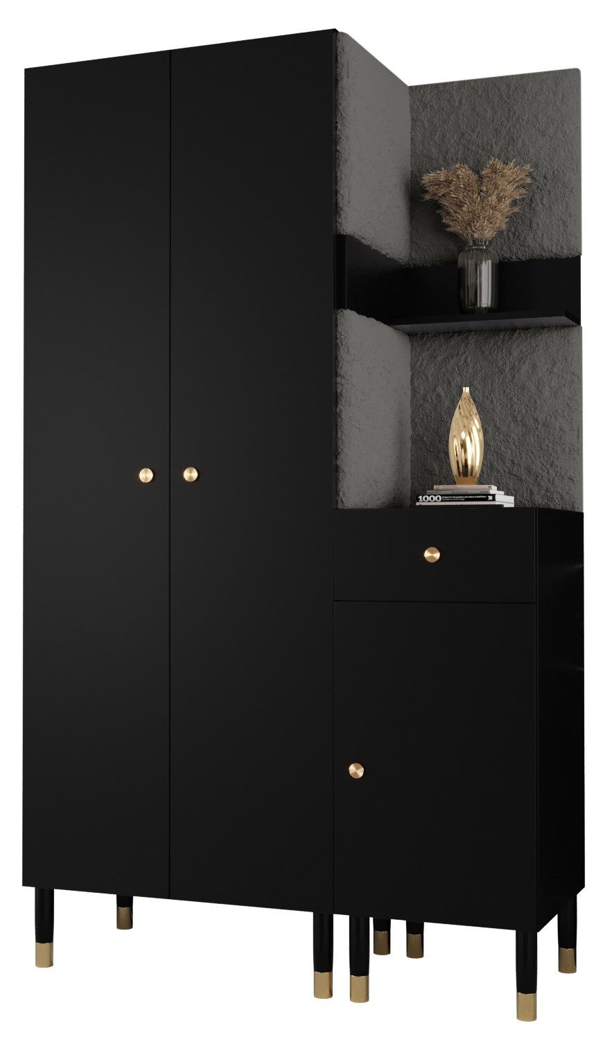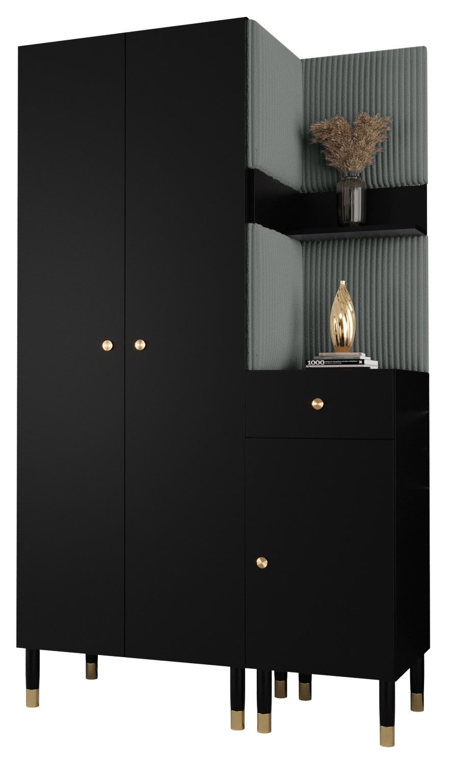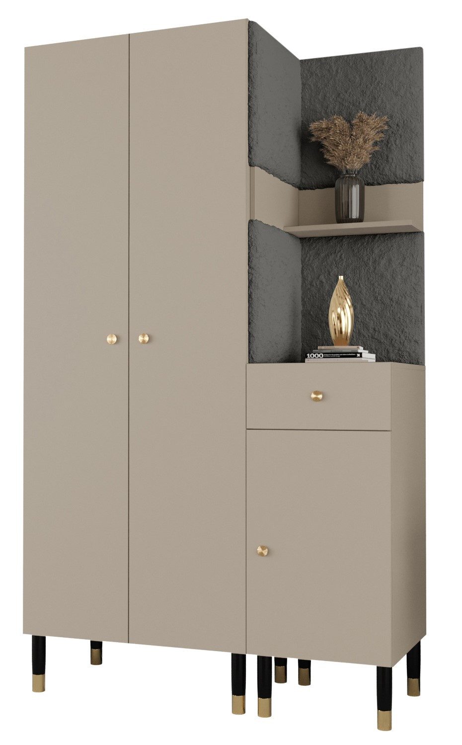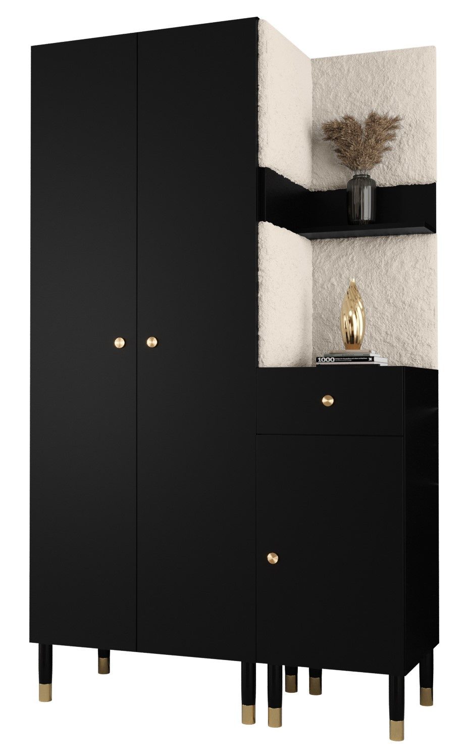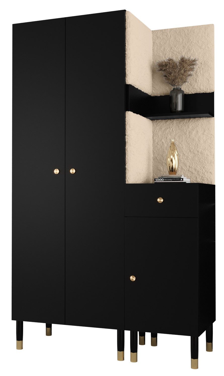 Technische Spezifikationen: Höhe: 200 cm, Breite: 116 cm, Tiefe: 45,6 cm, Farbe des Korpus: Kaschmir / Halifax / Schwarz. Farbe des Griffs: Gold.