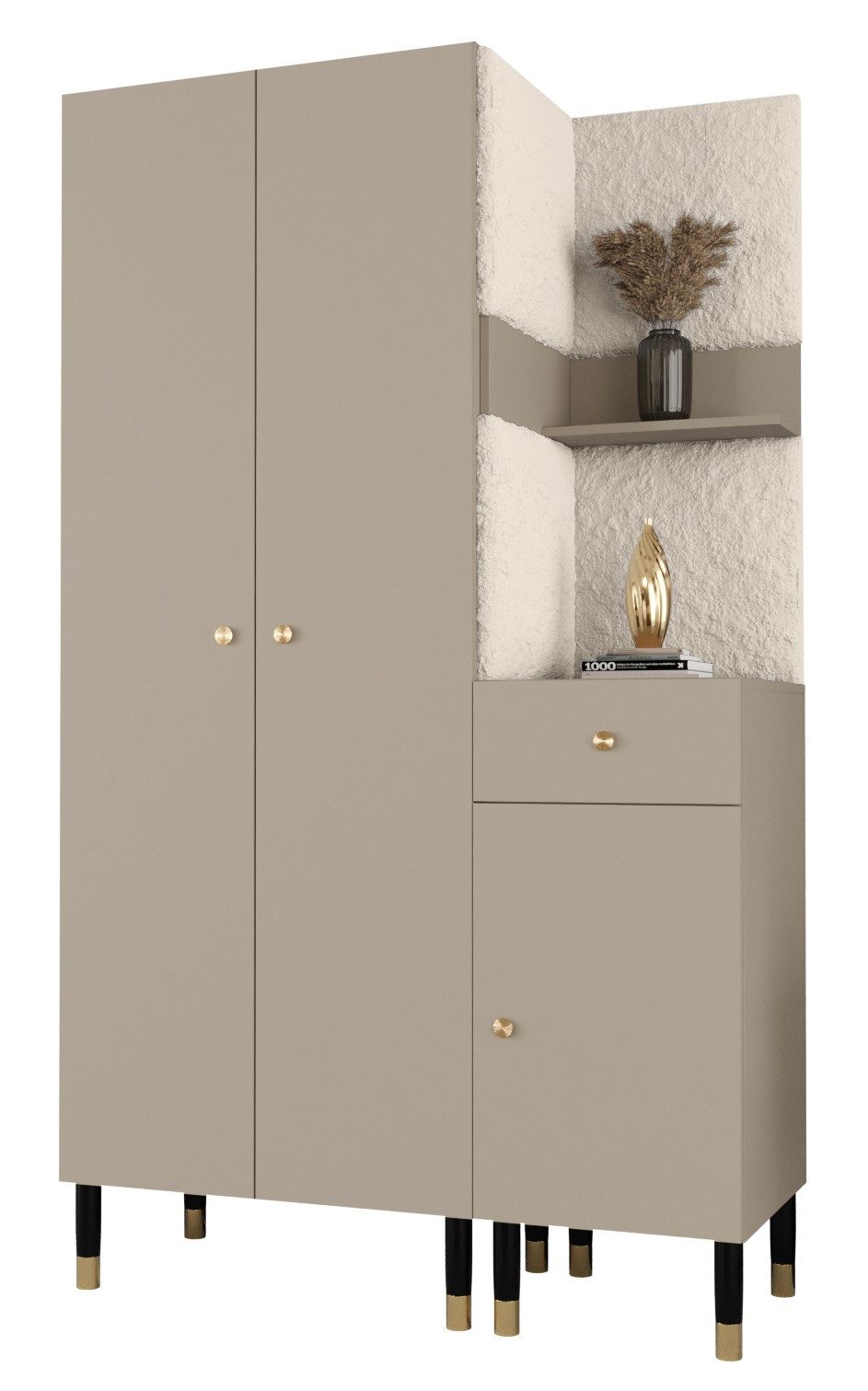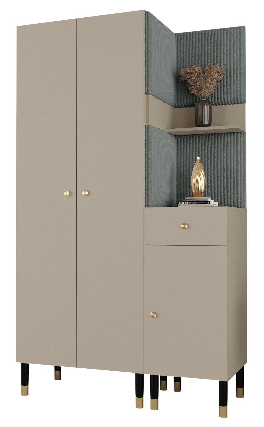 Viel Platz: Der PALERMO-Garderobe ist ein Möbelstück im modernen Stil mit modischen Polsterpaneelen, eine große Anzahl von Regalen und Kleiderbügeln, hohen Holzbeinen mit goldenen Kanten verleihen dem Kleiderschrank außergewöhnliche Funktionalität. Elegantes Design und eine große Auswahl an Paneelfarben ermöglichen es Ihnen, die Garderobe in Ihrem Flur frei zu gestalten!