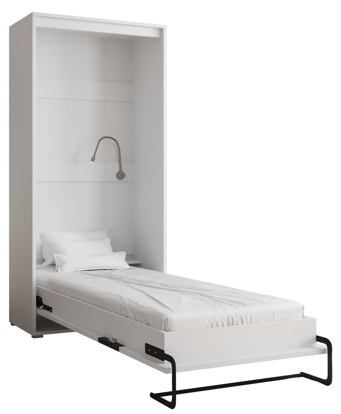 Solide Konstruktion: Der Bettkörper besteht aus 22 mm starkem Brett. Die Frontplatten des Bettes bestehen aus 16-mm-Platten, die Rückseite des Bettes besteht aus HDF-Platte. Die Kanten sind mit strapazierfähigem PVC-Furnier versehen. Der Federmechanismus unterstützt das Öffnen/Спрятать des Bettes. Das Halbwandbett muss mit speziellen Halterungen an einer Ziegelwand befestigt werden (ACHTUNG! Die Montage an einer Wand aus Gipskarton ist verboten).