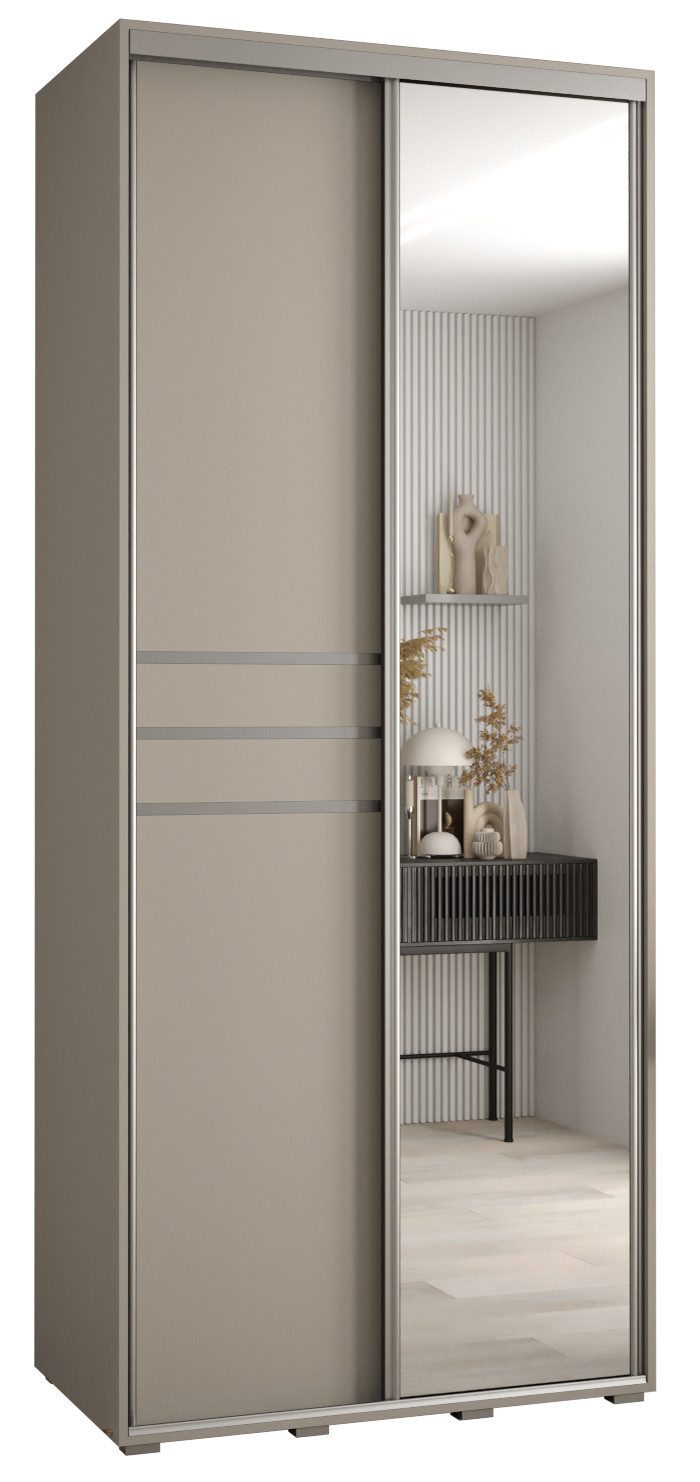 Technische Spezifikationen: Maße: Höhe: 235,2 cm, Breite: 100-200 cm, Tiefe: 45-60 cm . Die Stahlgriffe sind in drei Farben erhältlich: Schwarz, Gold und Silber. Im Set befinden sich die Staubschutzbürsten. Wahl der Innenausstattung beim Zusammenbau: Version 1 - ein langes Fach, eine Aufhängestange, Version 2 - zwei kurze Fächer, zwei Aufhängestangen.