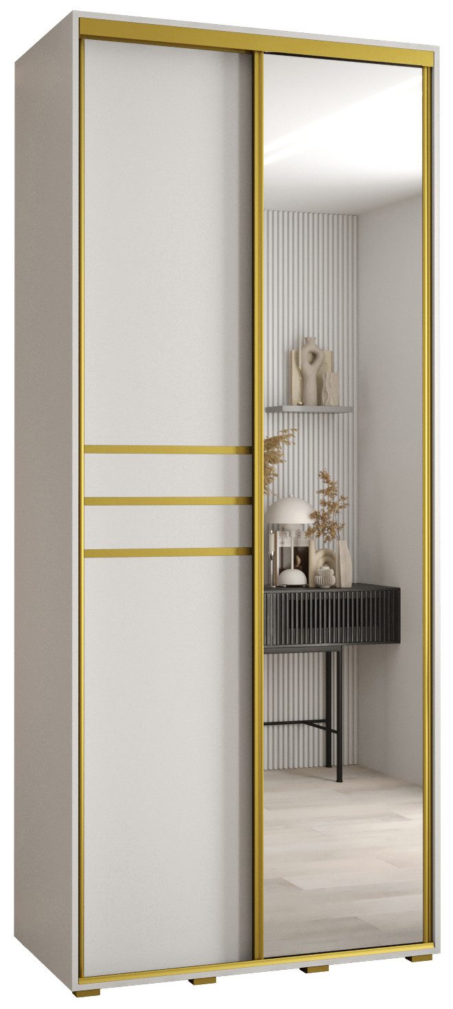 Technische Spezifikationen: Maße: Höhe: 235,2 cm, Breite: 100-200 cm, Tiefe: 45 cm . Die Stahlgriffe sind in drei Farben erhältlich: Schwarz, Gold und Silber. Im Set befinden sich die Staubschutzbürsten. Wahl der Innenausstattung beim Zusammenbau: Version 1 - ein langes Fach, eine Aufhängestange, Version 2 - zwei kurze Fächer, zwei Aufhängestangen.