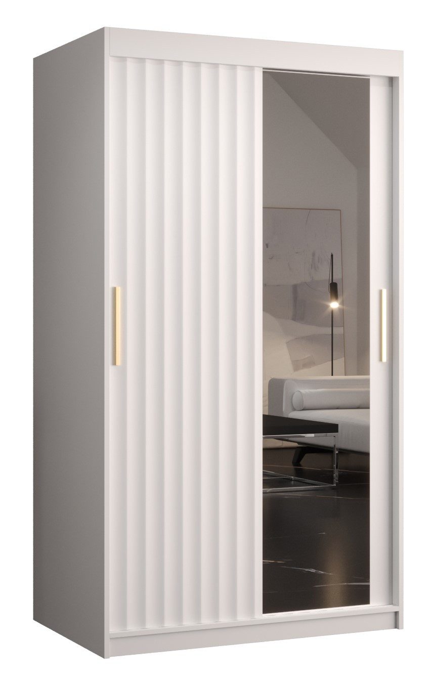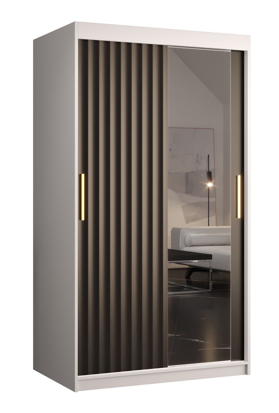 Solide Konstruktion: Wir achten auf die Qualität unserer Produkte, daher sind unsere Schränke aus langlebigen Materialien gefertigt. Der Korpus besteht aus 16 mm dicker Laminatplatte, die Kanten aus 0,5 cm dickem, beschädigungsresistentem PCV. Die Front der Garderobe besteht aus 18 mm starker MDF-Platte mit sichtbarer Fräsung. Die Griffe sind aus Kunststoff, die Stangen aus Metall, die Führungen aus Aluminium und das BIMAK-Schiebesystem. Kleiderschrank mit Spiegel.