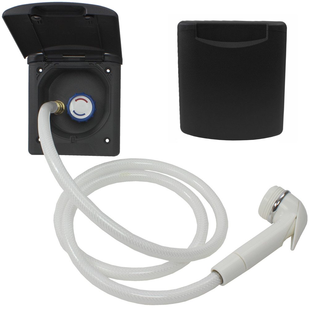 Außendusche mit Duschschlauch, Brausegarnitur und Magnetdeckel in schwarz