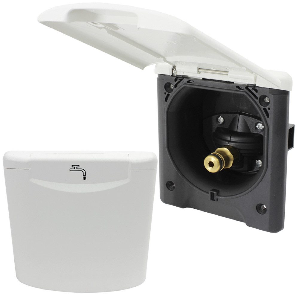 City-Wasseranschlussdose mit Gardena und Schlauchanschluss in weiß