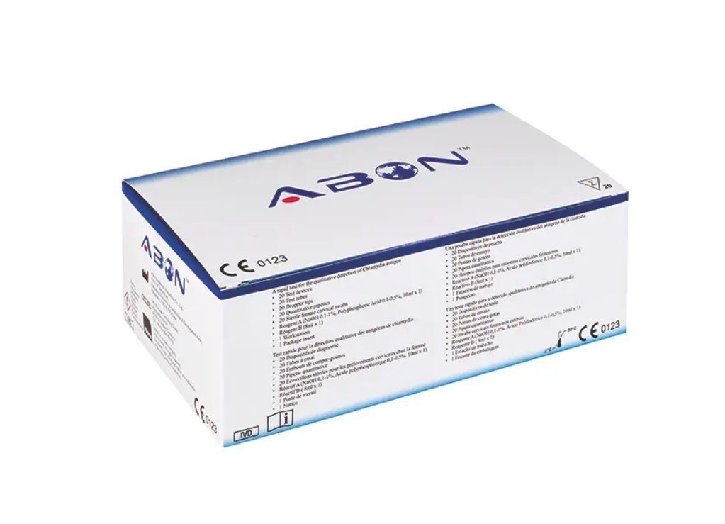 Der ABON Clamydias Test ist ein chromatographischer Immunoassay-Schnelltest zum qualitativen Nachweis von Chlamydia trachomatis im Zervixabstrich bei der Frau, Harnröhrenabstrich beim Mann und in männlichen Urinproben zur Unterstützung der Diagnose einer Chlamydieninfektion. Die Zahl der sexuell übertragbaren Krankheiten steigt weltweit kontinuierlich an. Die häufigste Ursache für eine solche Erkrankung ist die Infektion mit Chlamydia trachomatis, die für etwa 300.000 Neuinfektionen pro Jahr vor allem bei Jugendlichen und jungen Erwachsenen in Deutschland verantwortlich ist. Da eine Chlamydia-Infektion sehr ernste Folgen besonders für Frauen und Neugeborene haben kann, ist eine möglichst frühzeitige Diagnostik indiziert. Die üblichen Laborverfahren, wie Gewebekultur- und PCR-Nachweis sind in der Regel sehr teuer und arbeitsaufwändig. Mithilfe des ABON™ Chlamydia Test lässt sich Chlamydia Antigen spezifisch durch einen Antikörper nachweisen. Dabei kommt es zwischen dem aus der Probe extrahierten Chlamydia Antigen und einem spezifischen Antikörper zur Ausbildung eines Antigen-Antikörper-Komplexes, der bei einer positiven Probe eine farbige Linie im Testfeld (T) auf der Testkassette erzeugt. Das Fehlen dieser Linie belegt ein negatives Ergebnis. Im Kontrollfeld (C) wird immer eine farbige Linie zu sehen sein, die als interne Verfahrenskontrolle die korrekte Durchführung des ABON™ Chlamydia Tests bestätigt. Eine ChlamydienInfektion sollte nach einem positiven Ergebnis mit dem Schnelltest durch weitere klinische Daten oder Laborbefunde bestätigt werden.