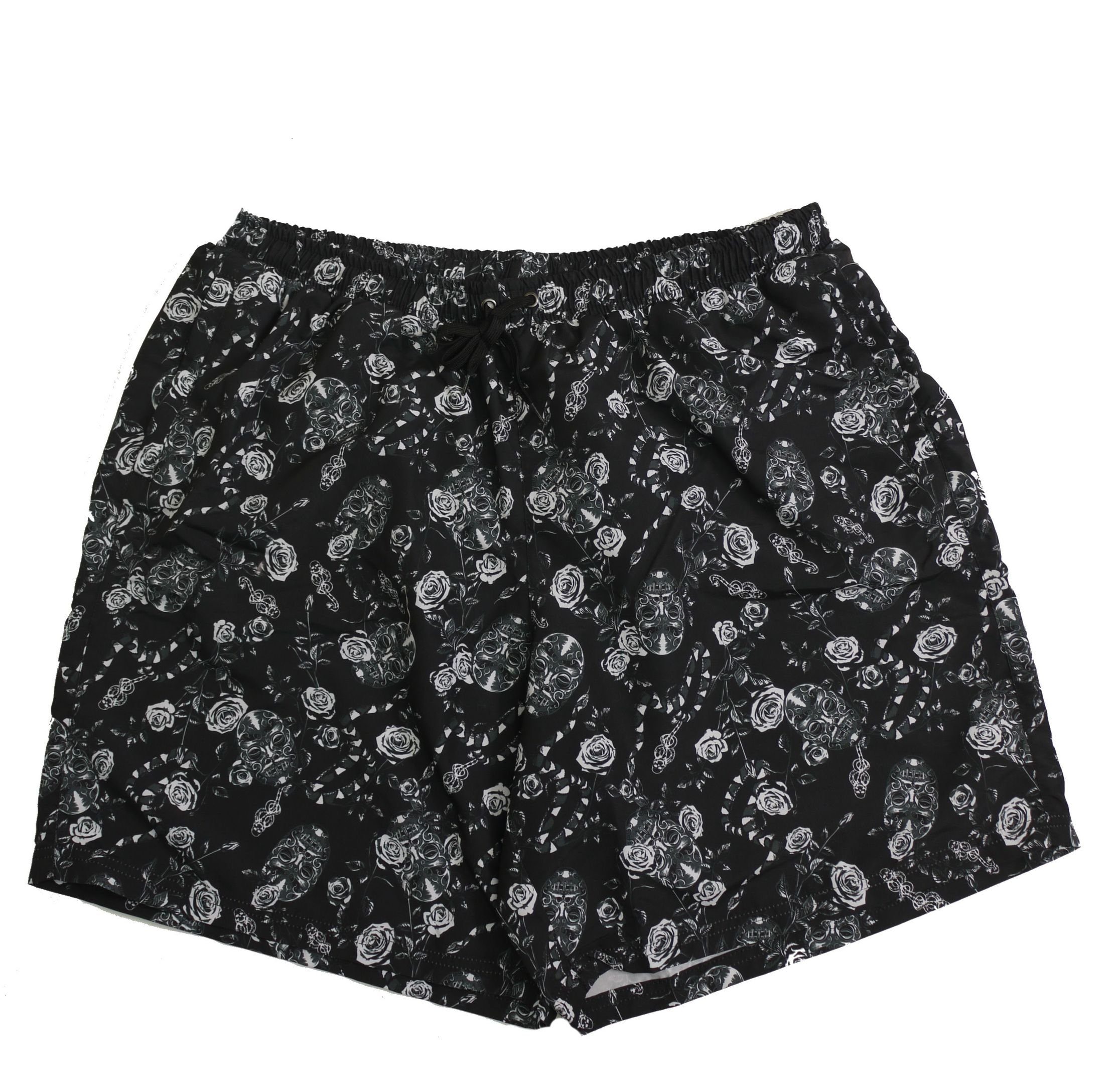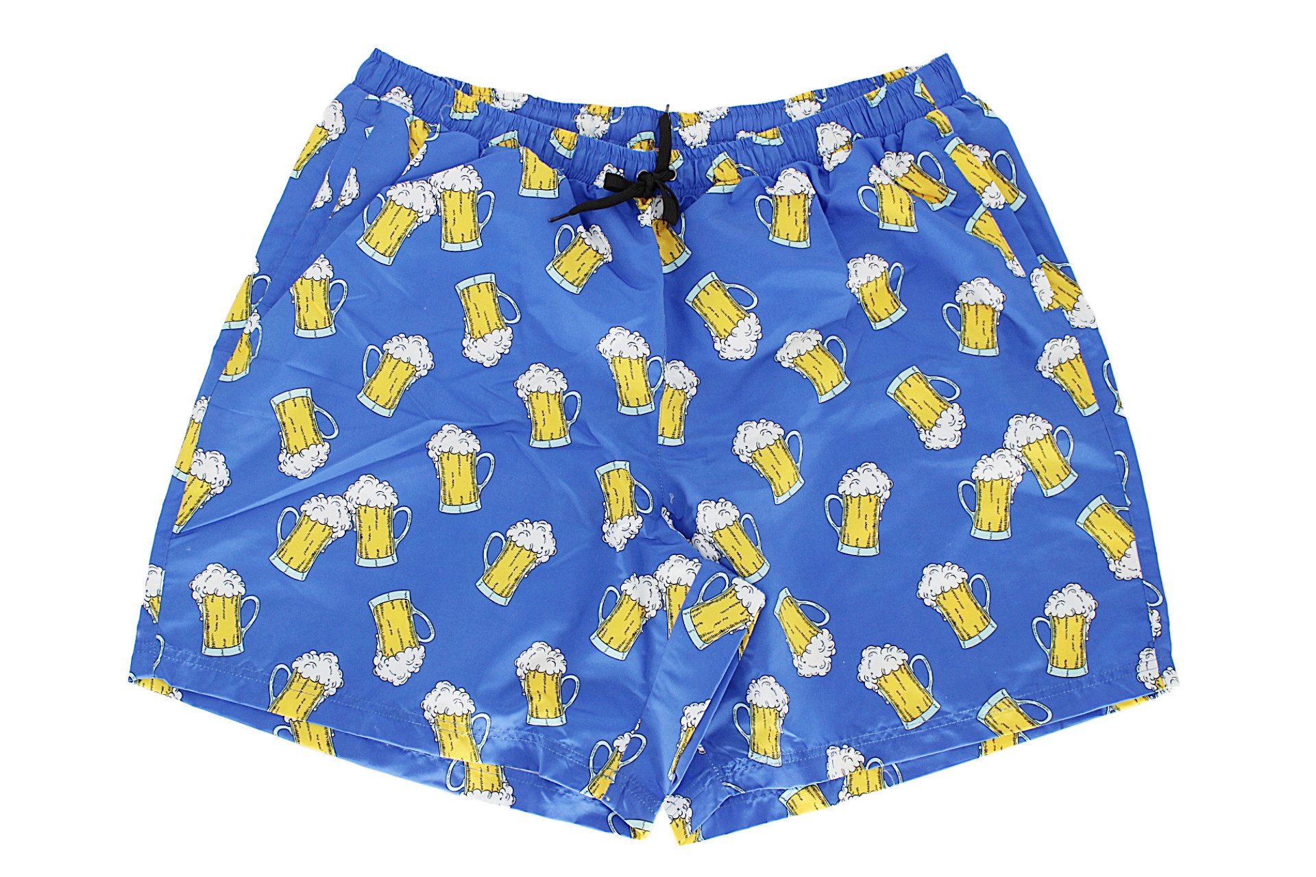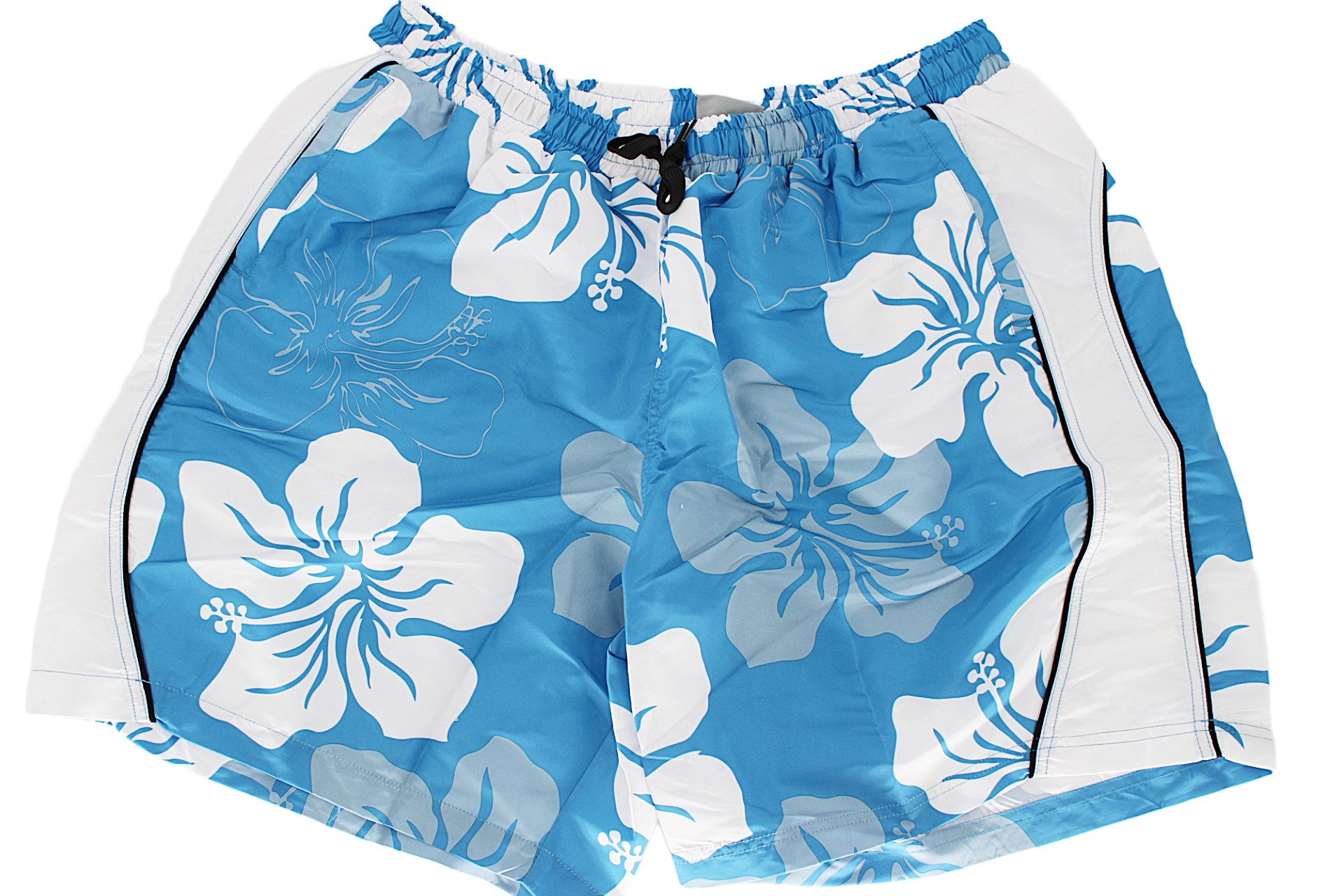 XXL Badeshorts mit coolem Druck. Die Badehose ist ausgestattet mit Innennetz, zwei Schubtaschen (eine mit Reißverschluss) und einer Gesäßtasche. Der elastische Bund ist zusätzlich mit einem Kordelzug verstellbar.