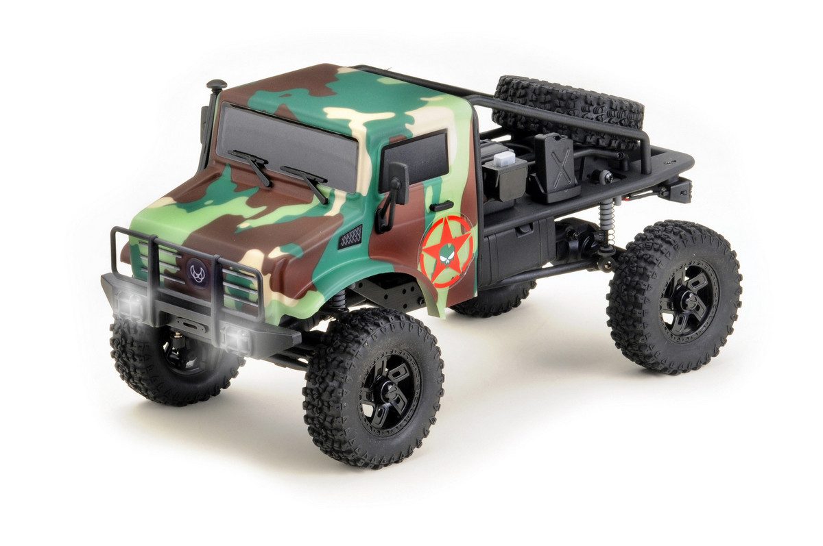 Lieferumfang | 1 St. Trail Hunter V2 camo, 2.4GHz Fernsteuerung, LiPo Akku 7.4V 600mAh, USB Ladekabel, Stickerbogen, Mini-Werkzeugset, Anleitung DE/EN/FR |