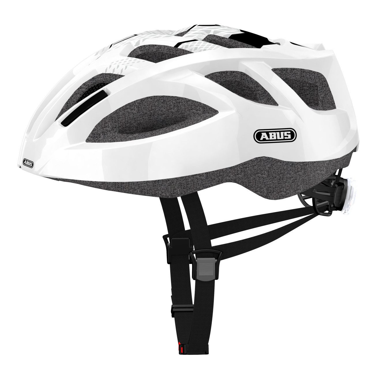 Produktdetails: Kopfumfang: 58 - 61 cm | Farbe: weiß | Ventilation - 11 Lufteinlässe/ 5 Luftauslässe | Verstellsystem mit LED-Rücklicht | Gurtlängeneinstellung und -arretierung | Rastersteckschloss mit Kinnpolster | Insektenschutznetz | DIN EN 1078 |
