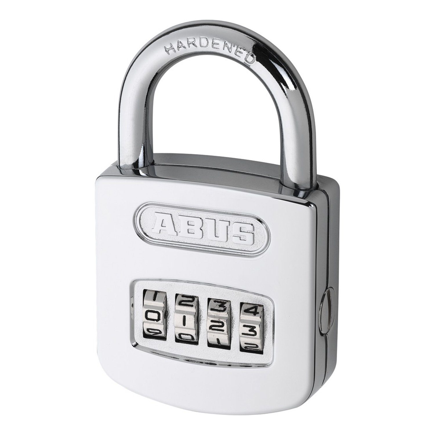 Das Vorhangschloss ABUS Prestige Code 160 besteht aus einem Schlosskörper in exklusiver Hochglanz-Verchromung und einem Bügel aus gehärtetem Stahl.