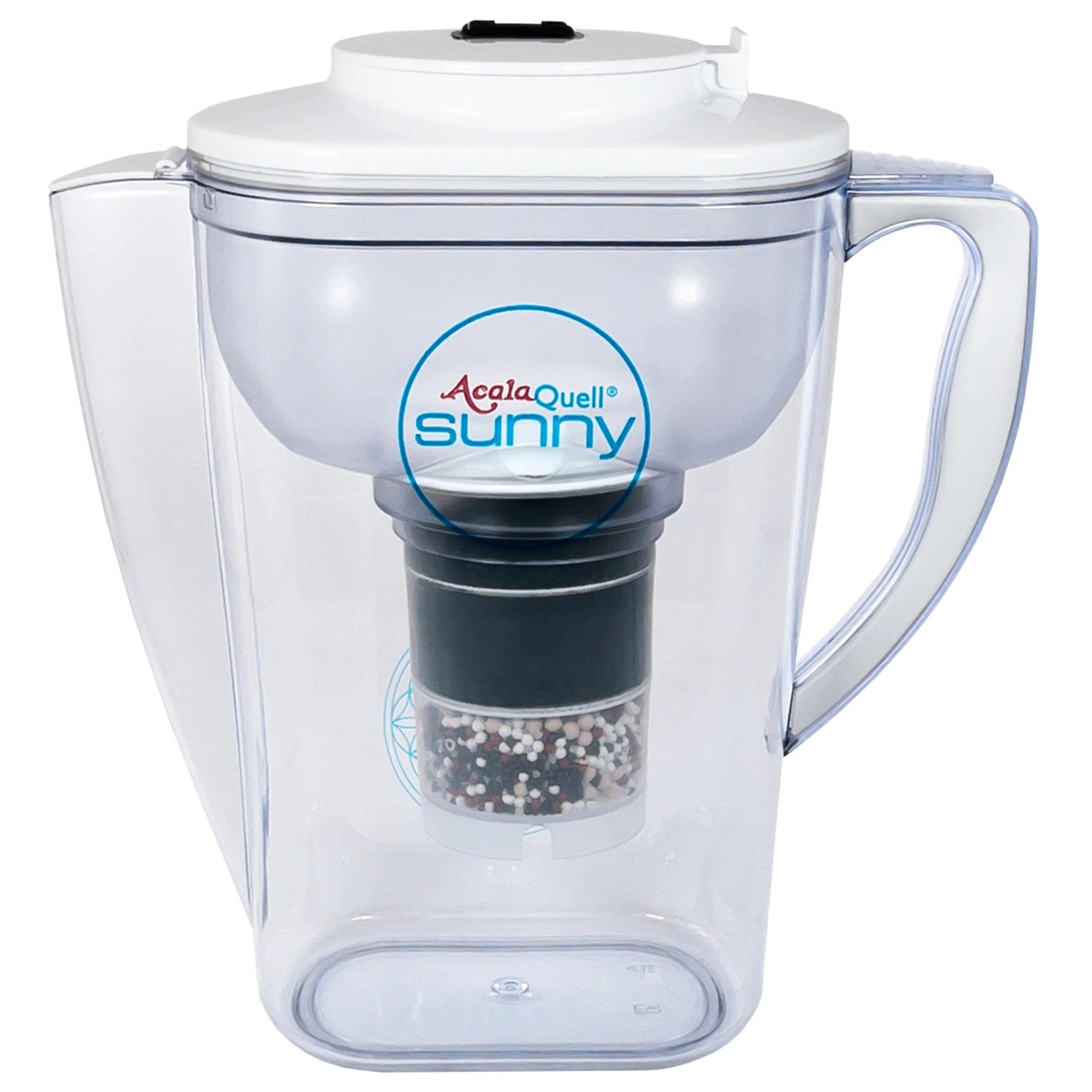 Sie erhalten: 1x AcalaQuell Sunny Kannenfilter inkl. 1x Mikroschwamm und 1x Filterkartusche