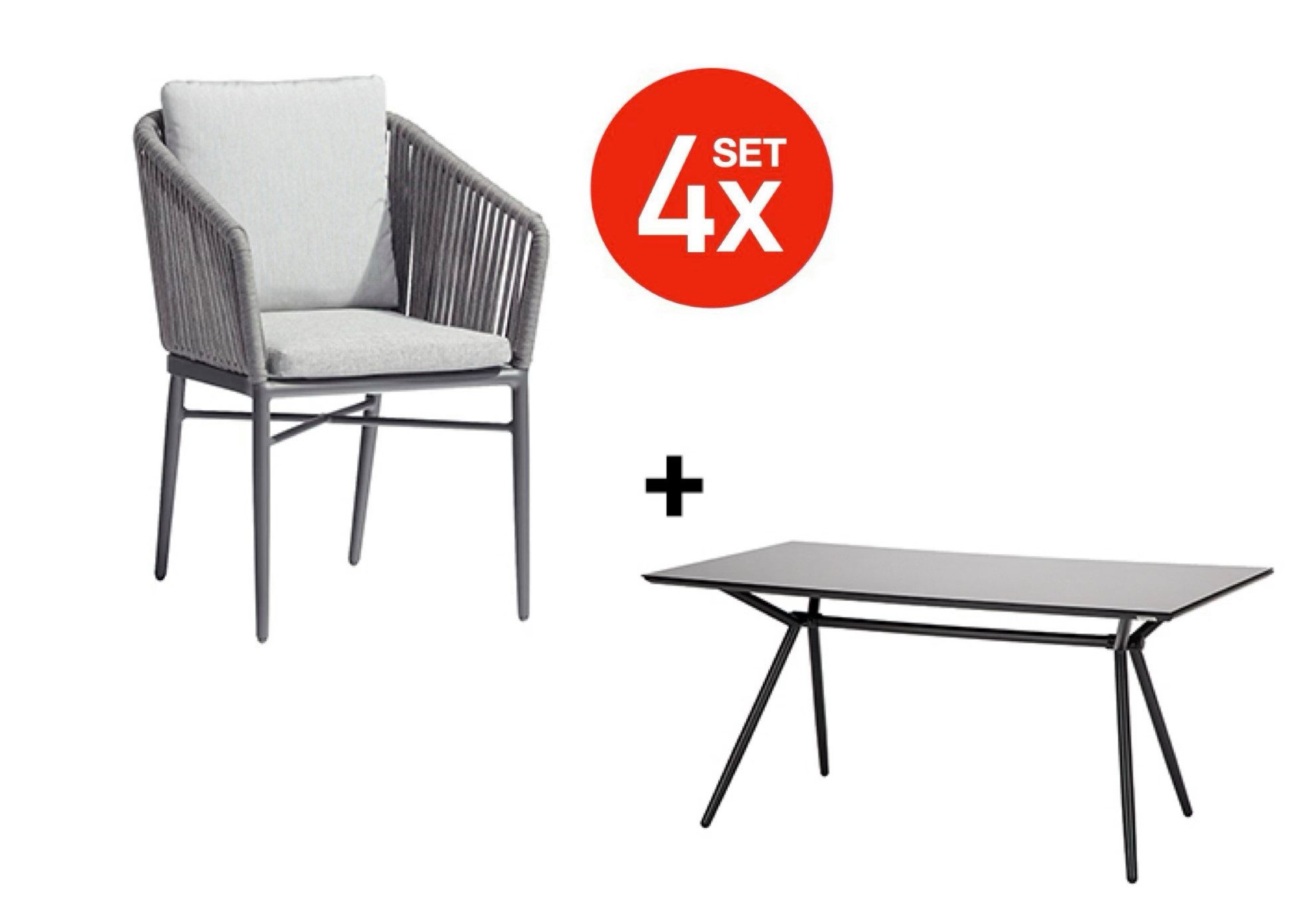 Lieferumfang | 4 x Stuhl inkl. Polster 1 x Tisch |