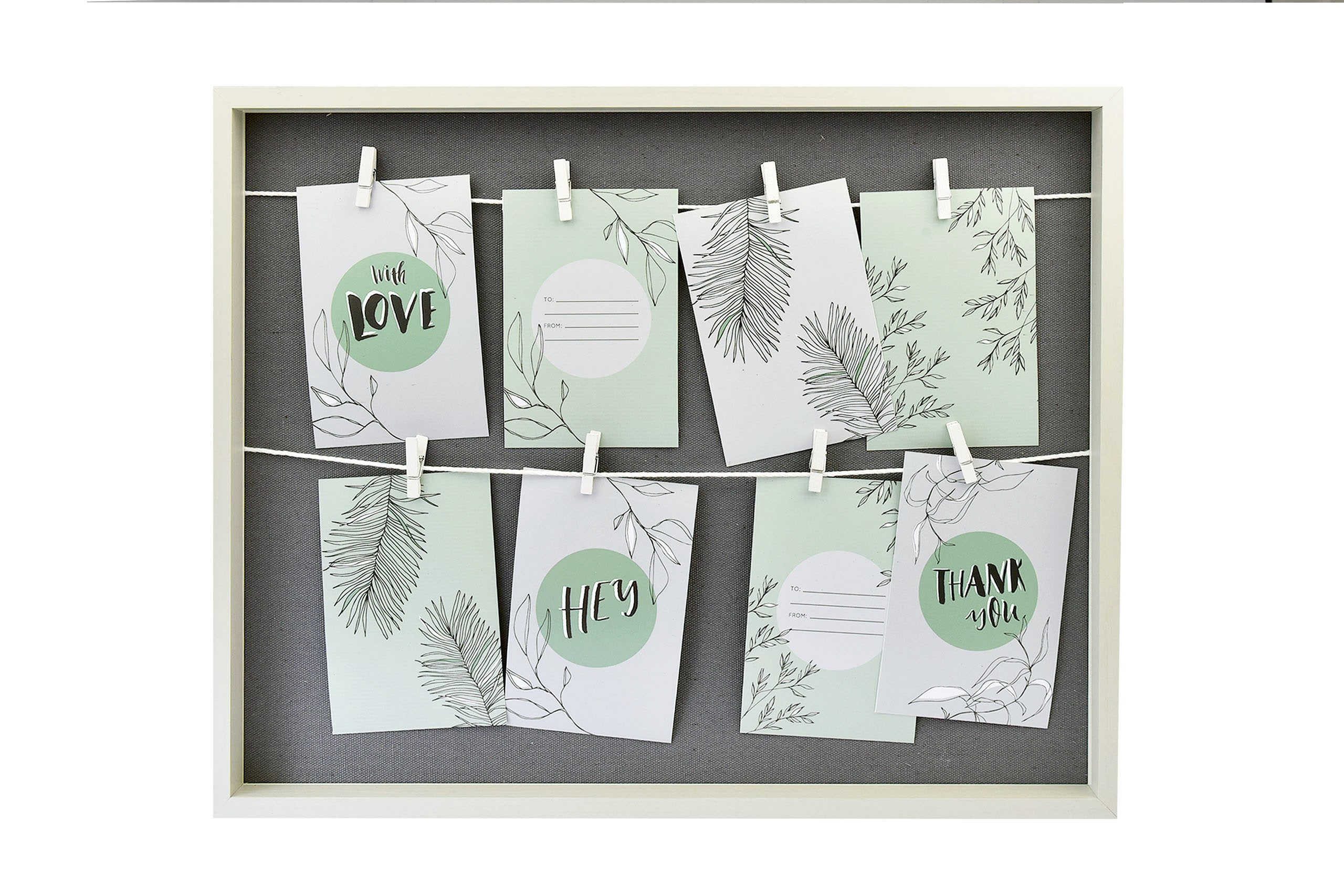 Mit der Collage von accent by nielsen können Sie Ihre Fotos, Notizen oder Karten schnell und mühelos aufhängen, dank der praktischen Wäscheklammern. Die naturbelassenen Wäscheklammern ermöglichen einen unkomplizierten Motivwechsel.