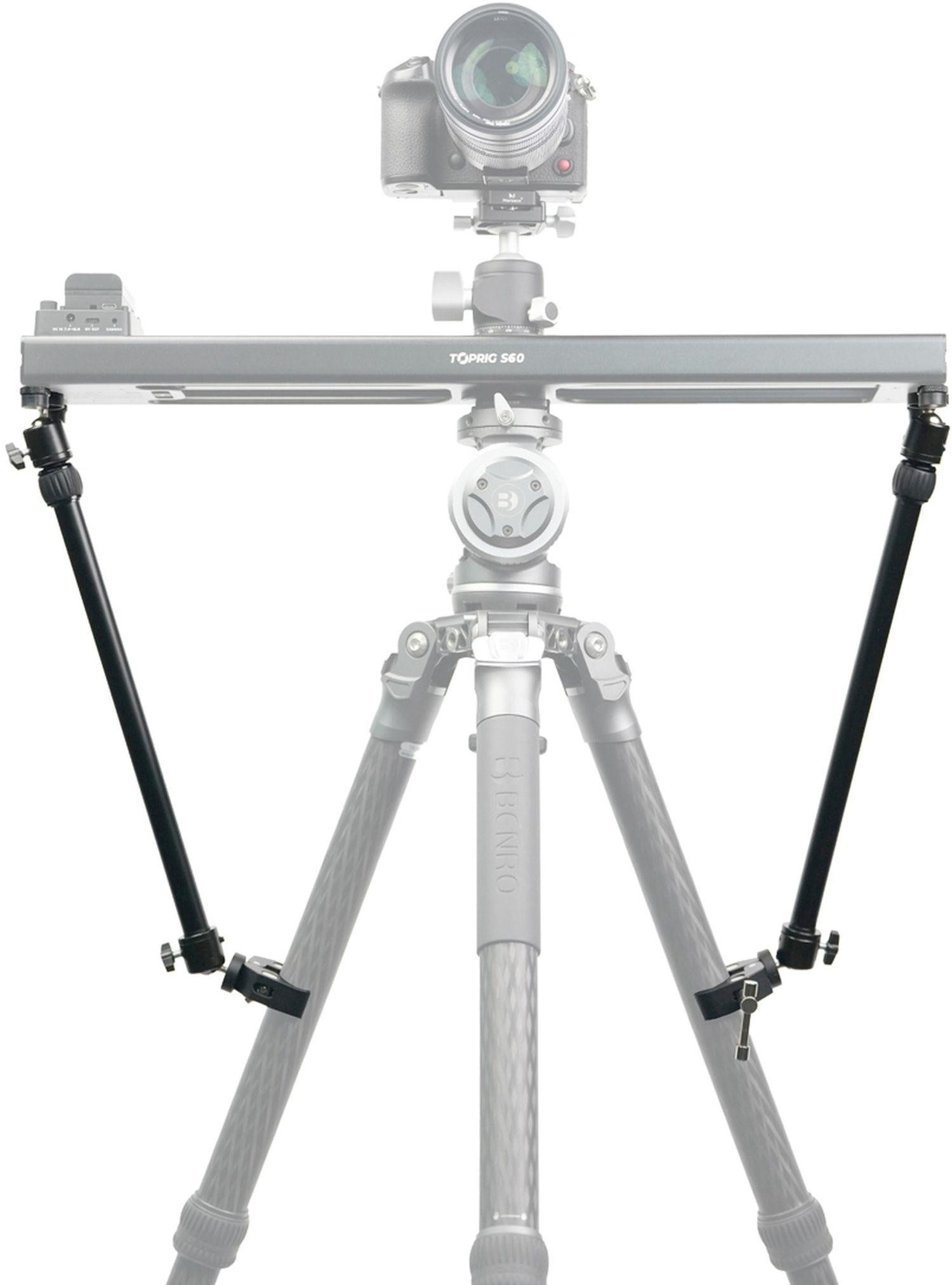 Die Stützstangen für Stative bieten eine einstellbare Длина von 490 mm bis 760 mm, was eine flexible Anpassung an verschiedene Anforderungen ermöglicht. Dank ihrer Konstruktion bieten die Stützstangen eine erhöhte Stabilität, die besonders bei anspruchsvollen Aufnahmen oder schwerem Equipment von Vorteil ist. Produktbilder zeigen optionales Zubehör und Anwendungsbeispiele.