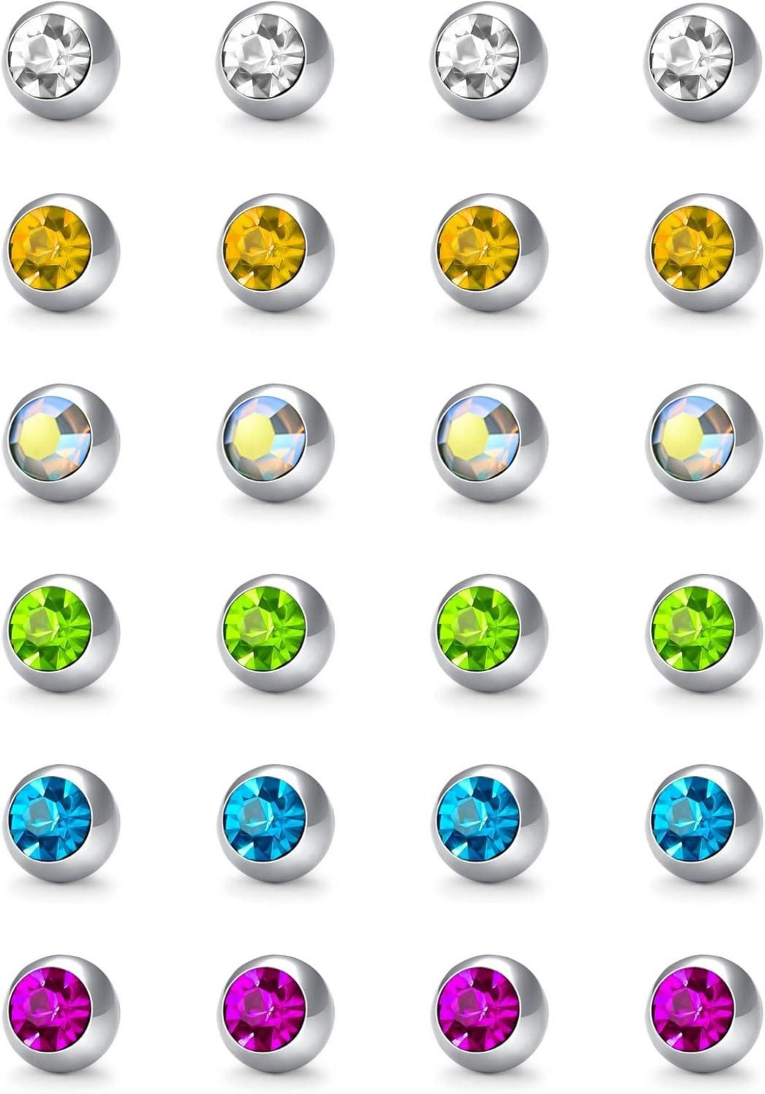Hergestellt aus hochwertigem Chirurgenstahl und Acryl bieten diese Ersatzkugeln eine dauerhafte Farbbeständigkeit, sind rostfrei und korrosionsbeständig, um Sie vor Всеrgien zu schützen. Das Paket enthält 24 Stück 5mm 14G Außengewinde-Ersatzkugeln in Edelstahl und Acryl, in verschiedenen Farben und Stilen, jeweils 4 Stück pro Stil/Farbe.