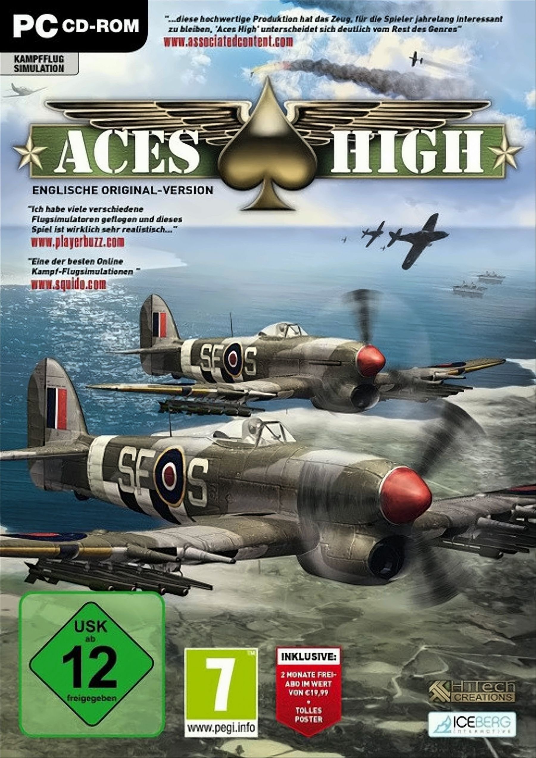 Spielbeschreibung | Aces High macht die Schlachten des Ersten und Zweiten Weltkriegs zu einem wahren Multiplayer-Erlebnis. Hunderte Spieler können zeitgleich in gigantischen Luftkämpfen in Dogfights und mit Bombenangriffen gegeneinander antreten. Die realistischen Flug-Simulationen sind das Herzstück von Aces High, aber das PC-Spiel hat viel mehr zu bieten: Der Krieg findet auch zu Land und im Wasser statt.Der Spieler bekämpft den Feind in Panzergefechten, verteidigt als Schütze die eigene Flotte, fährt in Torpedo-Booten Patrouille oder startet Angriffe in Amphibien-Fahrzeugen. Mit über 100 Fahrzeugen, Kampfflugzeugen und Booten hat der Spieler ein nahezu unerschöpfliches Arsenal an Möglichkeiten. Der Spieler kann an Szenarios teilnehmen, bei denen berühmte historische Schlachten nachgestellt werden. Auch kann er sich beim Wettfliegen mit seinen Gegnern messen.Sprache/Untertitel: Englisch |