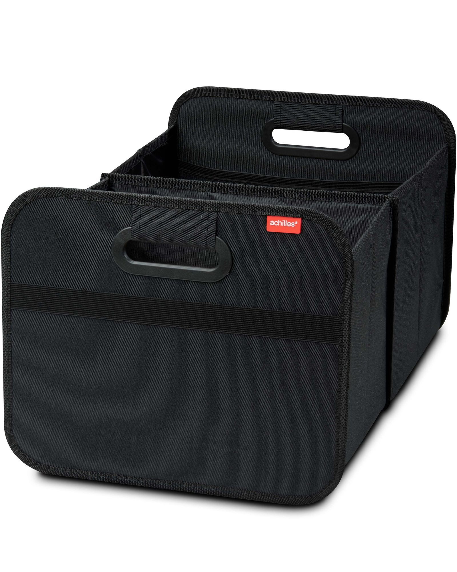 Mit dieser praktischen Faltbox verstauen Sie Ihre Einkäufe, Sportsachen, Autozubehör, Hunde-Utensilien, Werkzeug und vieles mehr sicher im Kofferraum. Keine herumfliegende Gegenstände mehr. Wenn diese Tasche gerade nicht in Gebrauch ist, falten Sie die Box platzsparend zusammen und verstauen sie im Kofferraum. Je nach Platzbedarf kann eines von den beiden geräumigen Fächer zusammengefaltet werden. Ein optimales Autozubehör für jeden Kofferraum. Der Auto-Organizer ist durch die verstärkten Wände äußerst robust und stabil. Aufgrund des pflegeleichten Polyesters ist diese Kofferraumtasche sogar wasserabweisend und bei Verschmutzungen leicht mit einem feuchten Tuch zu reinigen.