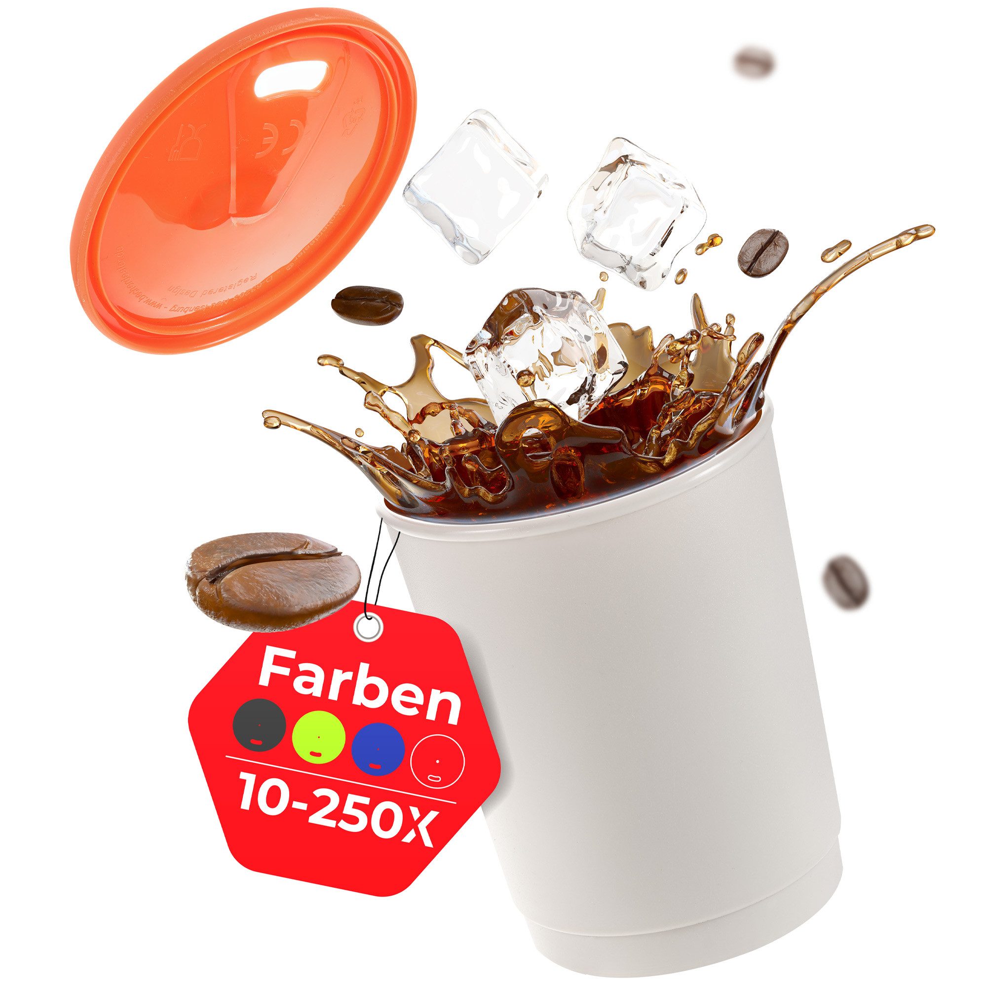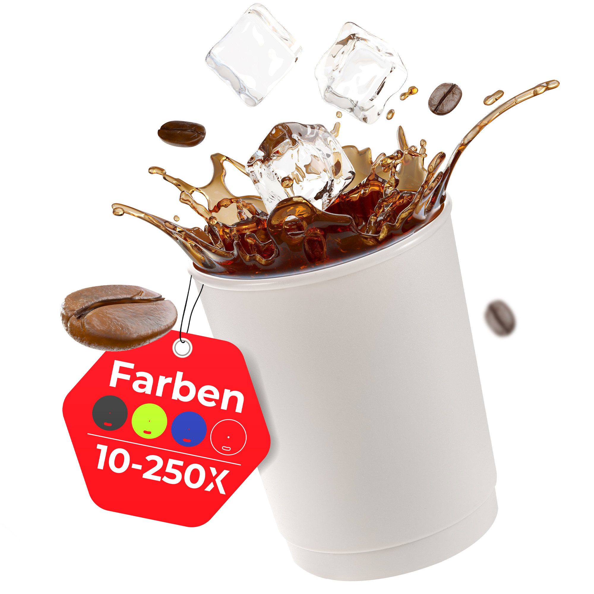 Ob für den privaten oder gewerblichen Bedarf - unsere Mehrweg-Becher sind perfekt für diverse Gelegenheiten oder auch Veranstaltungen. Auch optimal geeignet zur Einführung eines Pfandsystems für Gastronomie-Betriebe. Unsere Kaffee-Mehrwegbecher sind die perfekte Wahl für umweltbewusste Kaffeetrinker! Mit 0,33 L bietet der Becher genügend Fassungsvermögen für Ihre Lieblings Heiß- und Kaltgetränke wie Kaffee, Cappuccino, Tee oder Säfte. Die Coffee-to-go-Becher bestehen aus recycle fähigem, hochwertigem, geschmacksneutralem Polypropylen (PP) – lebensmittelecht, frei von Weichmachern und LFGB geprüft. Unsere Kaffee-Mehrweg-Becher sind spühlmaschienenfest, robust und bruchsicherer als herkömmliches Einweggeschirr. Sie können selbst schwere Stürze und festes Drücken unbeschadet und mit gleichbleibender Form überstehen. Unsere Becher sind nicht nur umweltfreundlich, sondern auch praktisch. Stapeln Sie die Becher einfach ineinander, um Platz zu sparen. Das geringe Gewicht der Becher macht das Transportieren komfortabel.