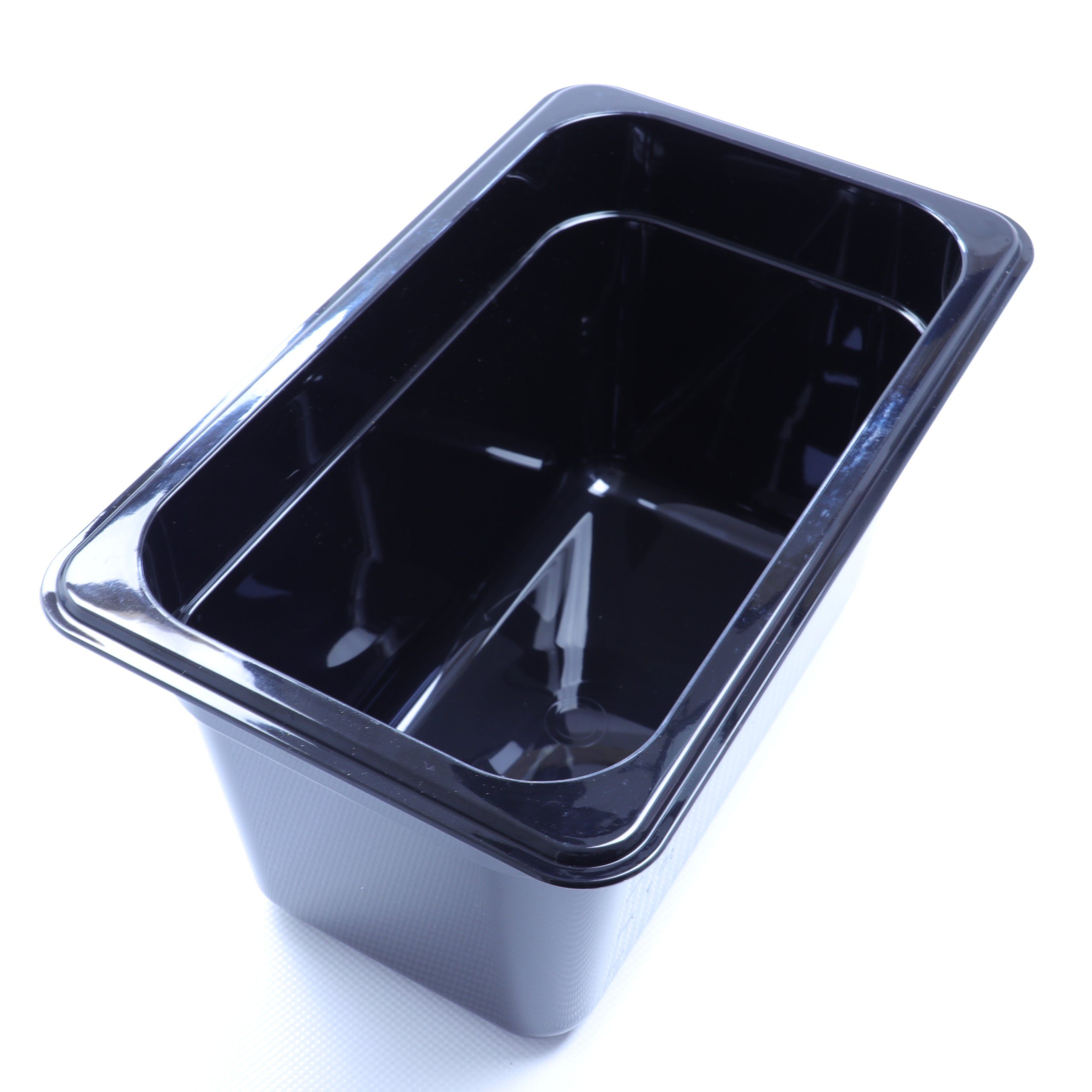 GN-Behälter aus schwarzem Polycarbonat können hygienisch sehr leicht gereinigt werden und sind zudem sehr hitzebeständig.