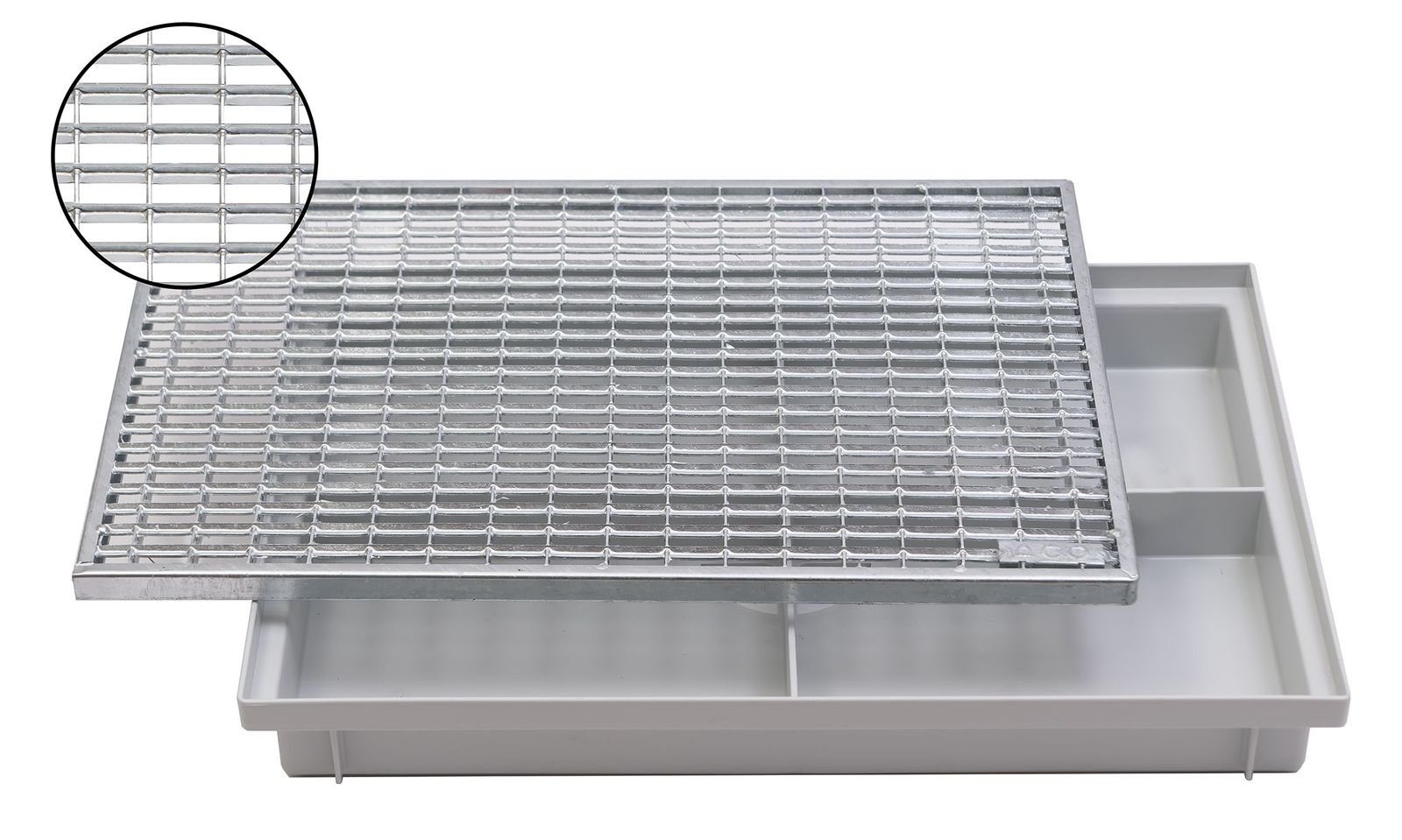 Die ACO Bodenwanne Vario Light bietet viele Möglichkeiten für den überdachten und unüberdachten Außenbereich. Die Bodenwanne hält in Kombination mit den verschiedenen Abtrittrosten und Schuhabstreifermatten von ACO groben Schmutz und Feuchtigkeit aus dem Haus fern. Durch das Mittelstegsystem der ACO Bodenwanne Vario Light wird eine zusätzliche Auflagefläche für die Abtrittroste und Schuhabstreifermatten geschaffen. Dadurch erhält die Bodenwanne Nr. 82400 zusätzliche Stabilität. Desweiteren verfügt die Bodenwanne über eine Ablauföffnung DN100, sodass mit Hilfe eines Rohrstutzens diese an ein Kanalsystem angeschlossen werden kann.