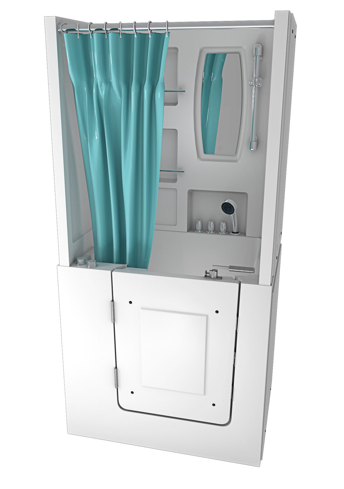 Die breite Türöffnung sowie der geräumige Einstiegsbereich, der integrierten Haltegriff und das anatomische Design des Wannenkörpers gewähren einen sicheren Halt und bieten Personen eine angenehme Bewegungsfreiheit.