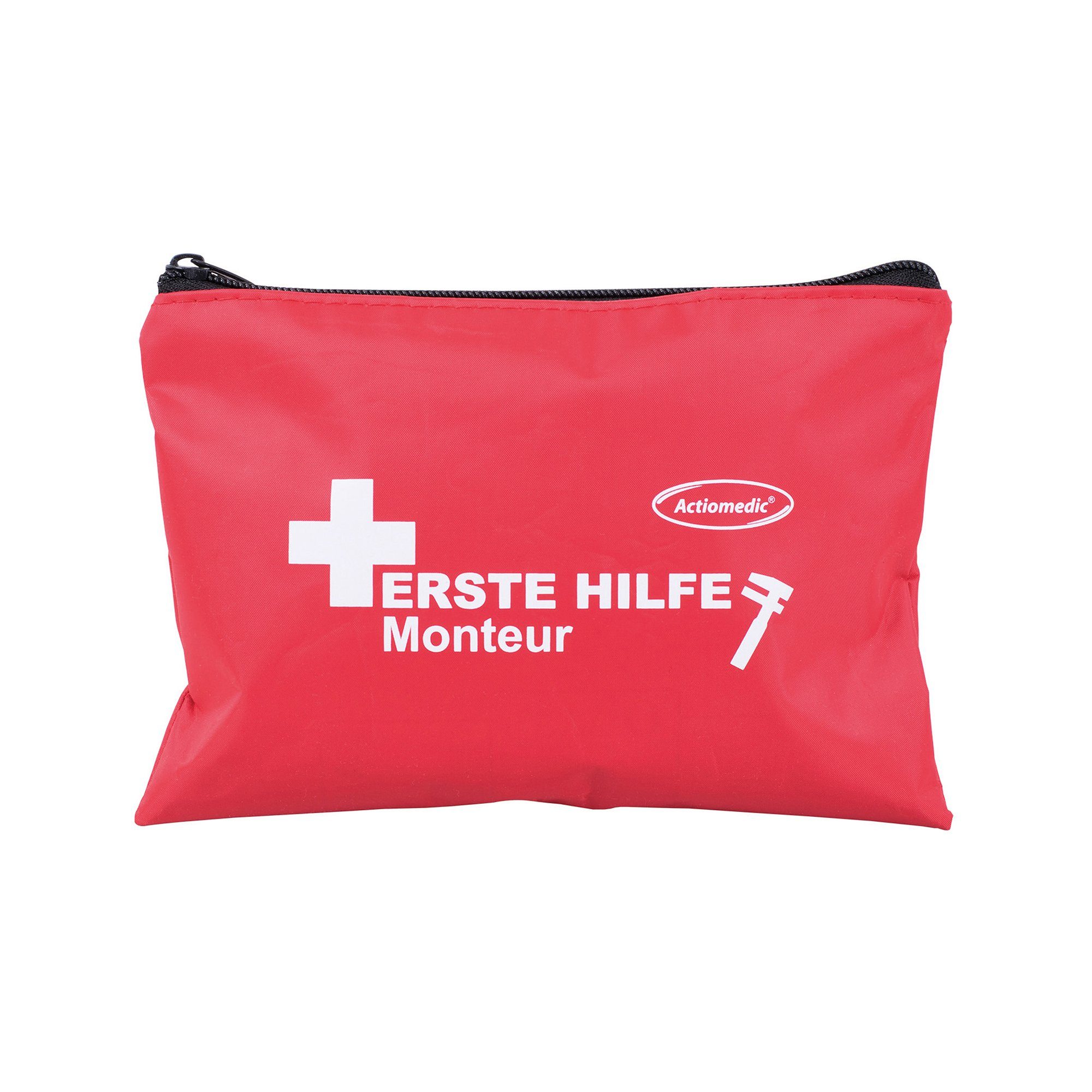 Actiomedic® Erste-Hilfe COMPACT Monteur ist eine kompakte Verbandtasche aus robustem Nylon. Die Verbandtasche beinhaltet eine Verbandstofffüllung mit Qualitätsprodukten von GRAMM. Der Inhalt der Actiomedic® Erste-Hilfe COMPACT wurde speziell für den mobilen Einsatz in der Montage zusammengestellt.