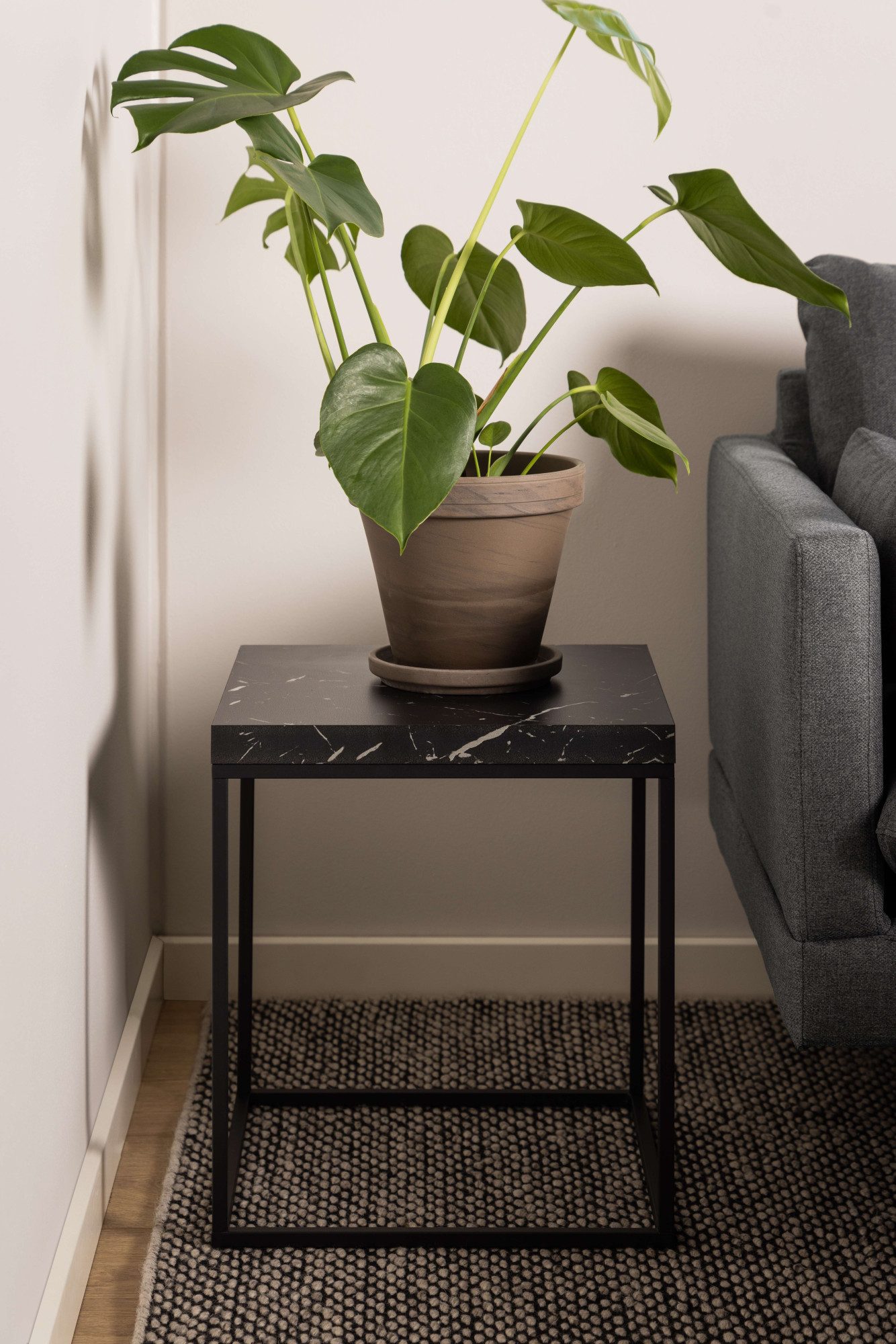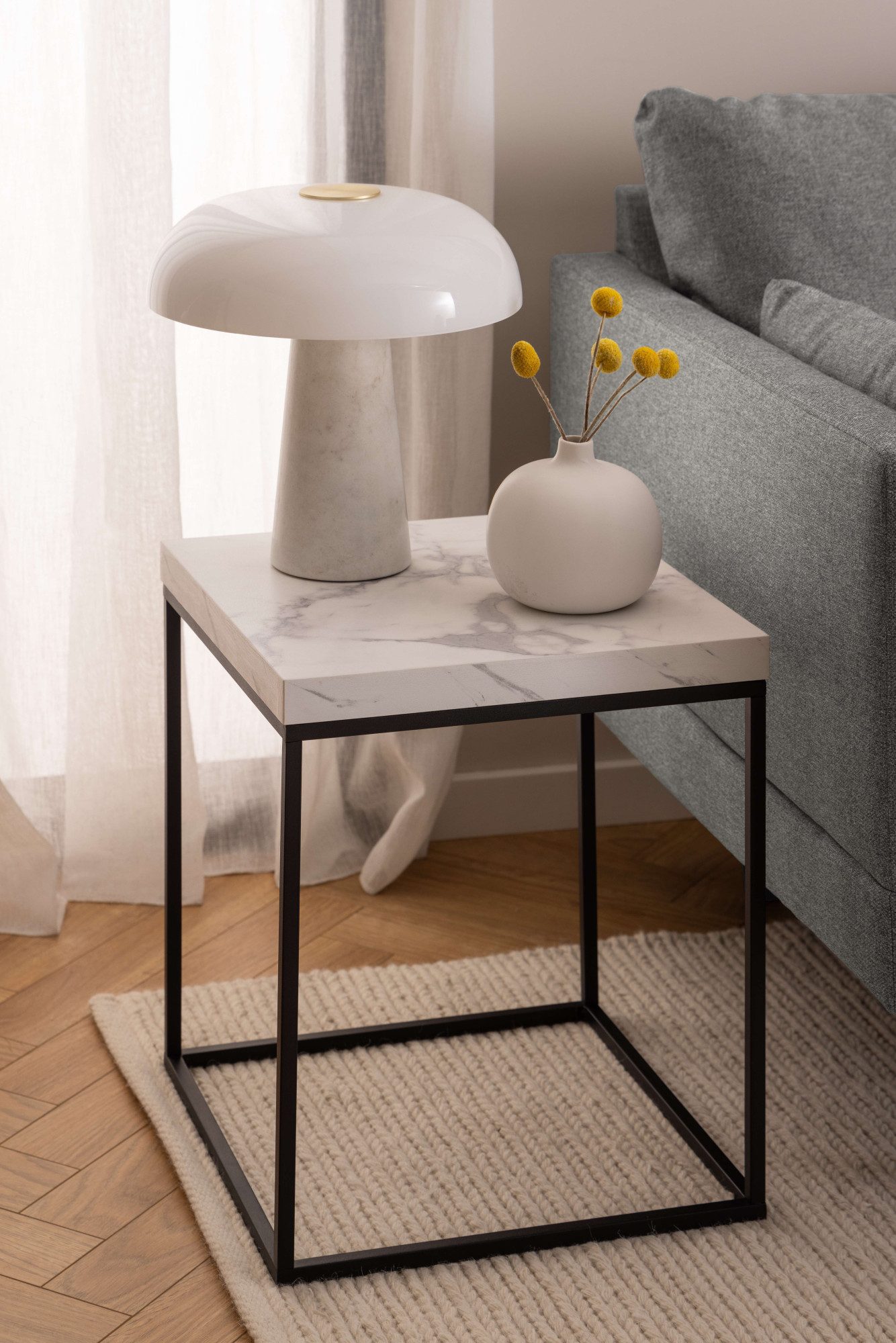 Als Mittelpunkt deiner Wohnlandschaft hält dir dieser Couchtisch «Barossa Wohnzimmertisch, Beistelltisch, Quadratisch, Sofatisch,» von ACTONA GROUP Snacks und Getränke beim Entspannen jederzeit bereit. Bei etwa 20 Kilogramm liegt die maximale Belastbarkeit. Die Tischplatte aus Holzwerkstoff ist stabil und sehr tragfähig, wobei die Materialstruktur schön ebenmäßig und widerstandsfähig ist. Wie du den Tisch sauber hältst, zeigen dir die Pflegehinweise auf dem beiliegenden Produkt- und Materialpass.