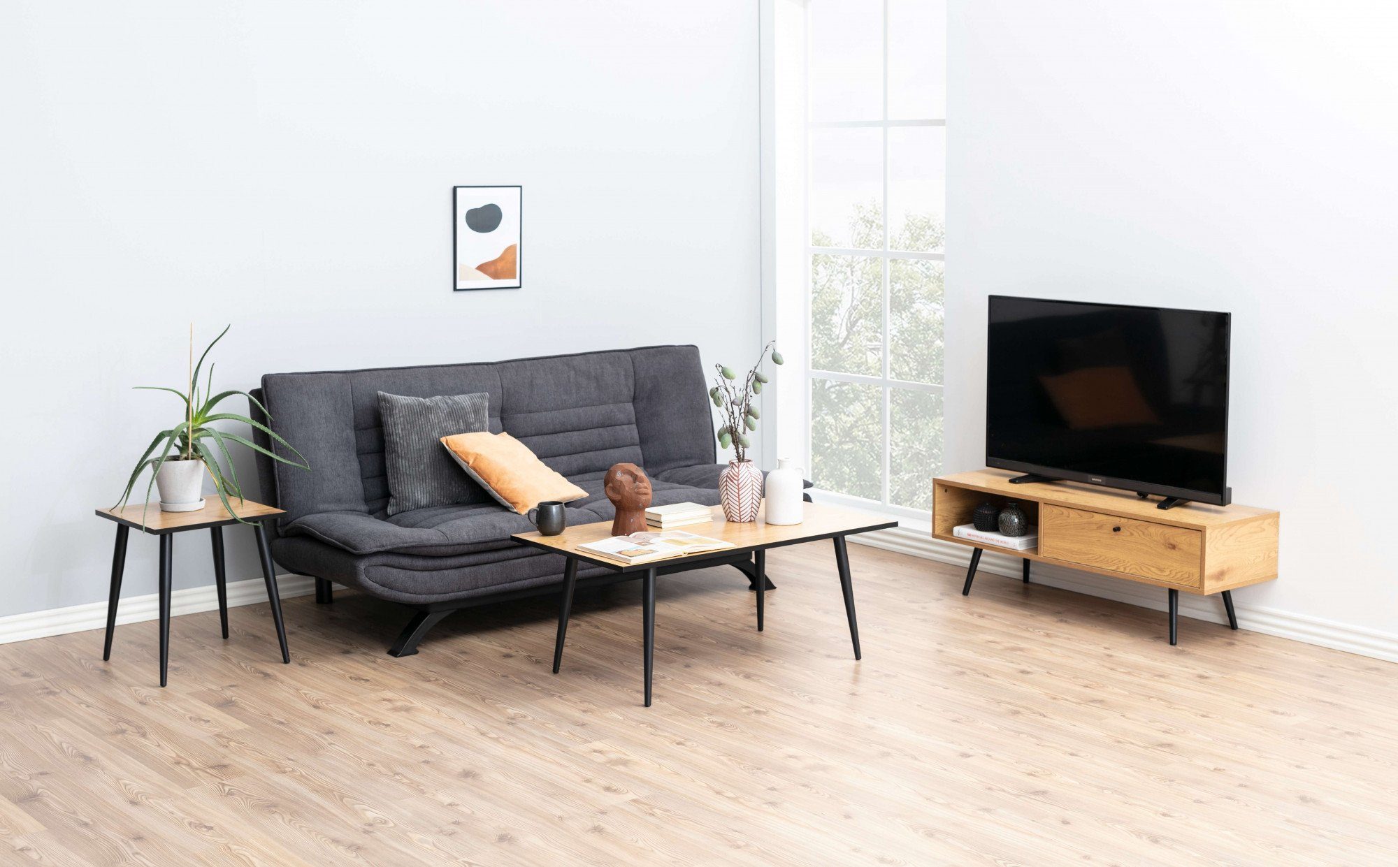 Du fragst dich, wie sich das Möbelstück kombinieren lässt? Hier eine kleine Inspiration für dich: Die Ästhetik des modernen Stils ist reduziert und strahlt eine schlichte Eleganz aus. Um Akzente zu setzen, eignen sich beispielsweise farbige Vasen gut, die entweder mit Blumen oder auch mit bunten Lichterketten dekoriert werden können.