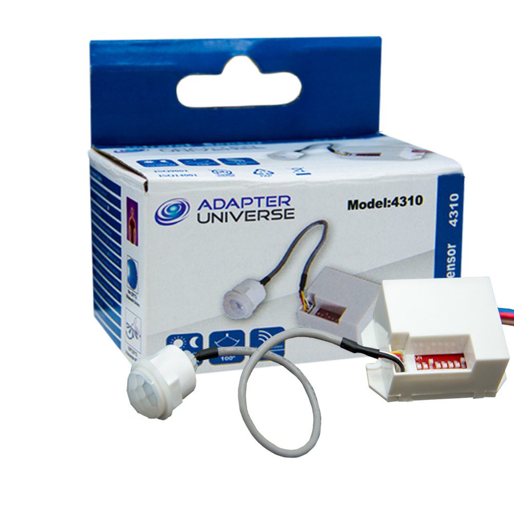 Der Adapter-Universe PIR Mini Bewegungsmelder ist für den Einbau z.B. in den Unterputz geeignet und bietet neben einer einstellbaren Empfindlichkeit und Einschaltdauer, eine Tag und Nacht Identifizierung.