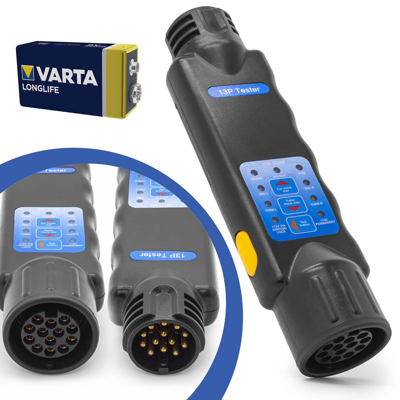 Dieser Adapter ist ein Beleuchtungs- und Kabeltester für Anhänger und Zugfahrzeuge. Unser Testgerät gewährleistet schnellstes und einfachstes Suchen von Kabelleitungsdefekten an Anhängern sowie an Zugfahrzeugen. Defekte Kabelfarben werden vom Gerät durch LED's angezeigt. Es können alle 13-polige Dosen und Stecker geprüft werden.