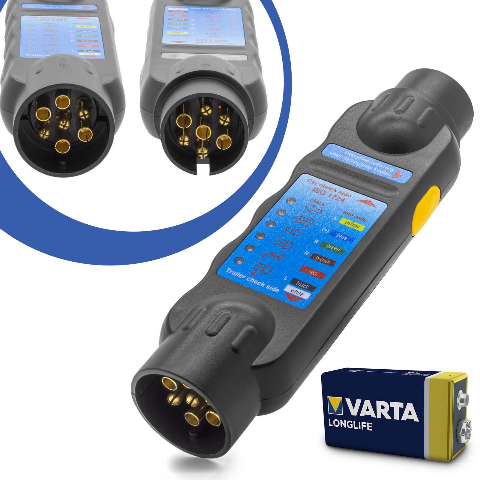 Dieser Adapter ist ein Beleuchtungs- und Kabeltester für Anhänger und Zugfahrzeuge. Unser Testgerät gewährleistet schnellstes und einfachstes Suchen von Kabelleitungsdefekten an Anhängern sowie an Zugfahrzeugen. Defekte Kabelfarben werden vom Gerät durch LED's angezeigt. Es können alle 7-polige Dosen und Stecker geprüft werden.