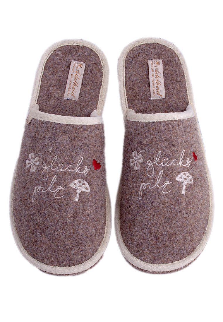 Der Adelheid-Klassiker Glückspilz in harmonischen Beigetönen und dezenter Stickerei - ein Glücksbringer mit Gemütlichkeit im Gepäck. Ein wunderschönes Geschenk für einen lieben Menschen