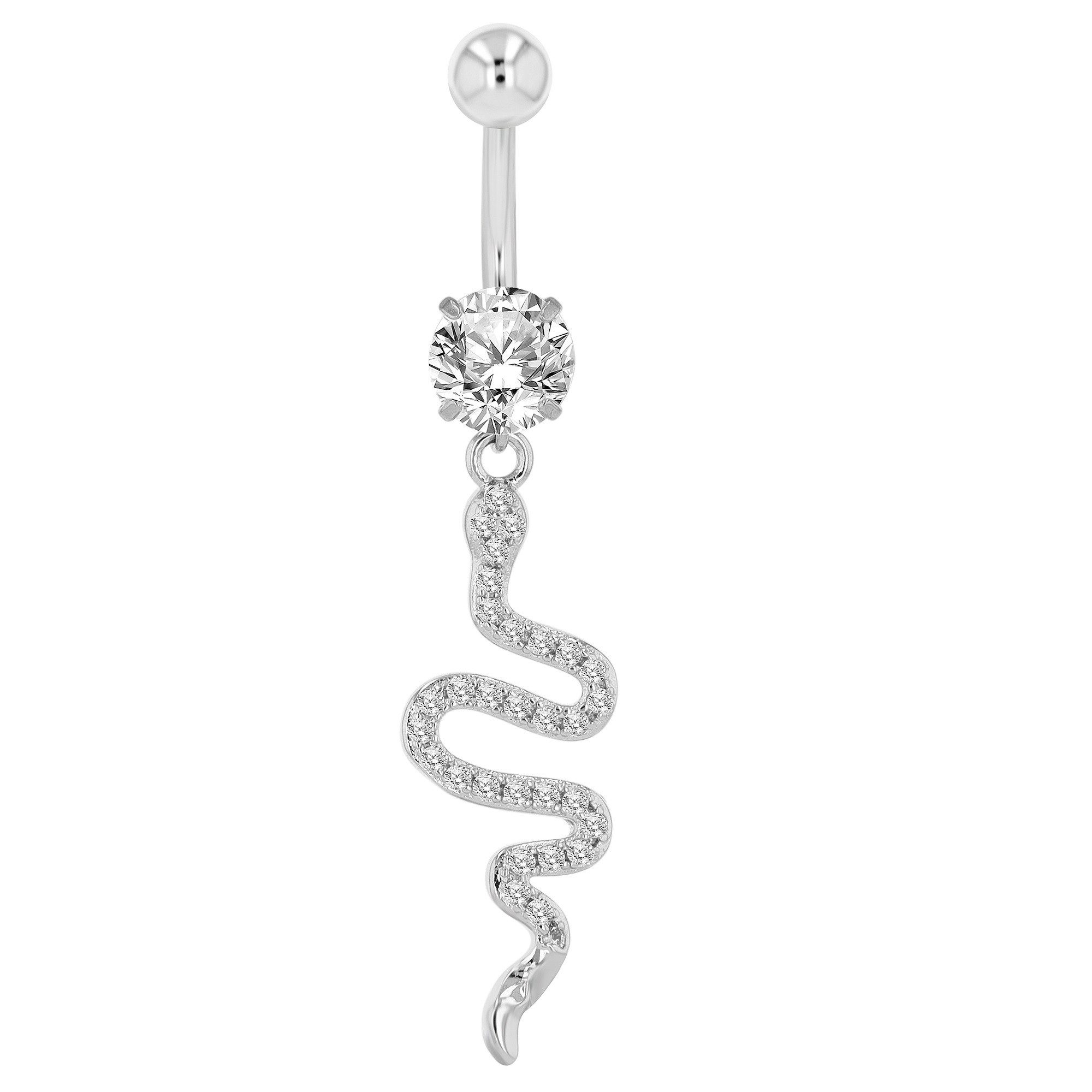 Unsere Bauchnabelpiercings sind gefertigt aus erstklassigem Edelstahl, der nicht nur für seine Langlebigkeit, sondern auch für seine hygienischen und hypoallergenen Eigenschaften bekannt ist. Edelstahl ist beständig gegen Rost und allergische Reaktionen, was für eine sichere und langfristige Nutzung sorgt. Die Verwendung von Bronze verleiht dem Piercingschmuck zusätzliche Härte und macht es korrosionsbeständig. Die Piercings sind in verschiedenen Designs erhältlich, alle mit einer silberfarbenen Basis, die einen zeitlosen und eleganten Look verleiht. Ob schlicht und minimalistisch oder mit verspielten Verzierungen - die Vielfalt unseres Менюs bietet für jeden Geschmack und Stil das passende Bauchnabelpiercing. Der Stab hat eine Stärke von 1,6 mm und eine Длина von 11 mm, während die Kugeln einen Durchmesser von 5 mm aufweisen. Diese Abmessungen sorgen nicht nur für einen stabilen Halt, sondern auch für einen angenehmen Tragekomfort. mit Liebe gefertigt : aus Edelstahl Oberfläche / Verarbeitung : glänzend Motiv : Schlange besetzt mit : Zirkonia