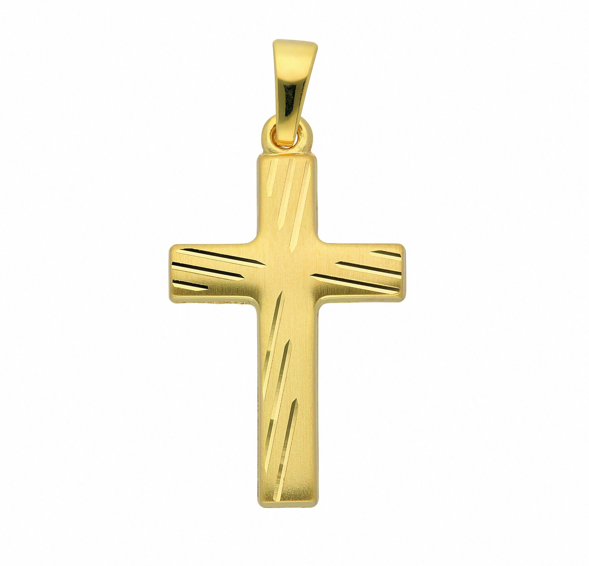 Adelia´s Kreuzkette Halskette - Kreuzkette mit Kreuz Anhänger aus 333 Gold, Schmuckset mit bis 45 cm stufenlos verstellbarer 925 Silber Halskette
