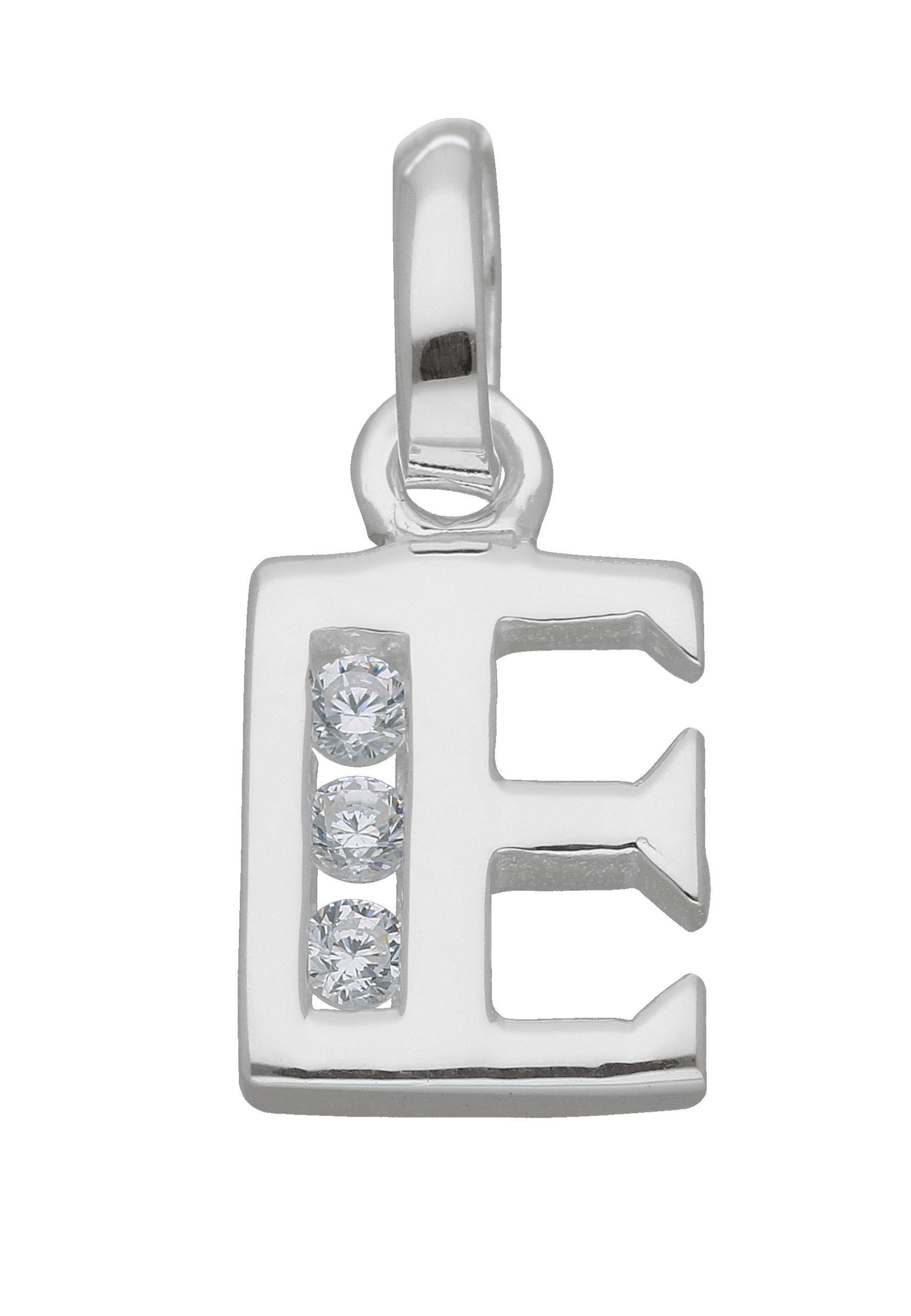 Adelia´s Namenskette Halskette - Namenskette mit Buchstabenanhänger E mit Zirkonia, Schmuckset mit bis 45 cm stufenlos verstellbarer 925 Silber Halskette