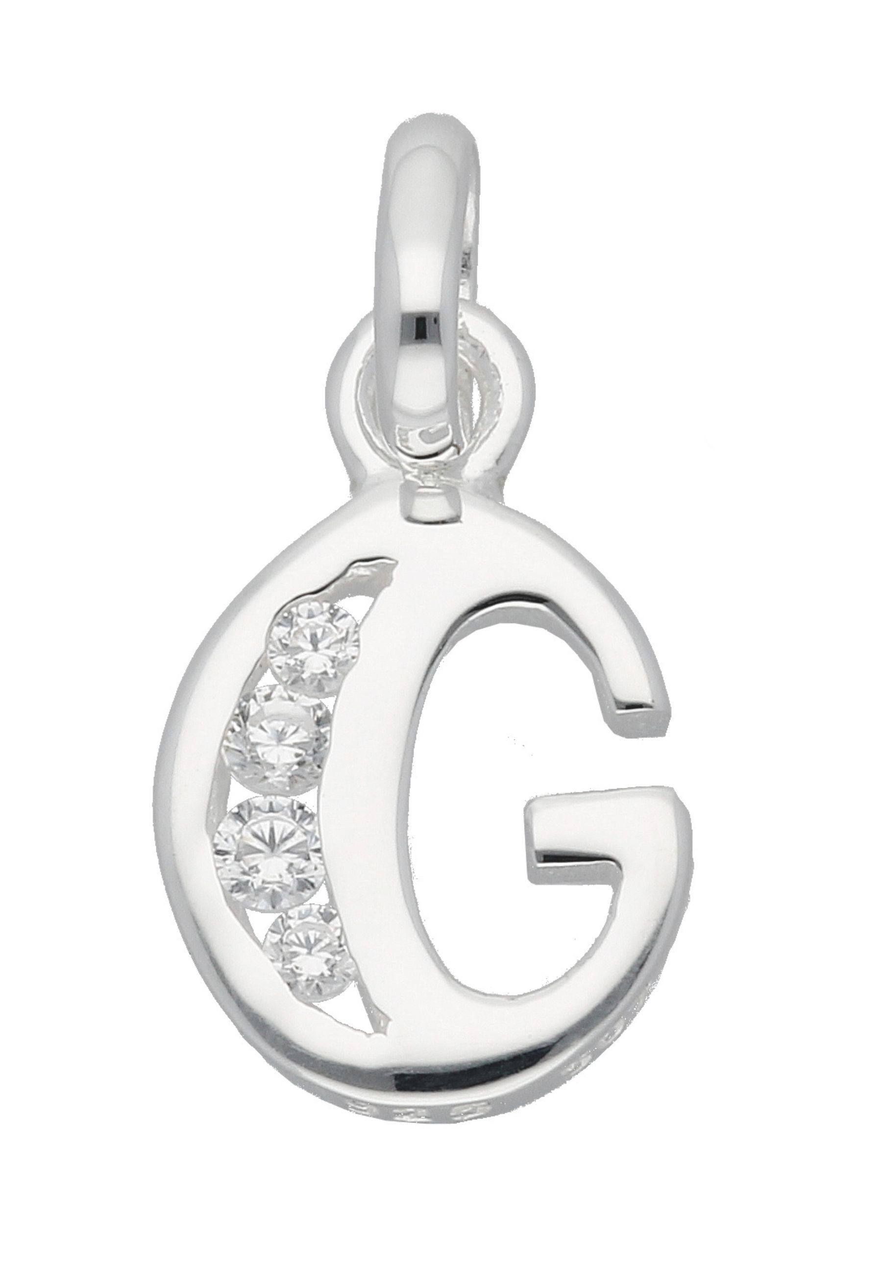 Adelia´s Namenskette Halskette - Namenskette mit Buchstabenanhänger G mit Zirkonia, Schmuckset mit bis 45 cm stufenlos verstellbarer 925 Silber Halskette