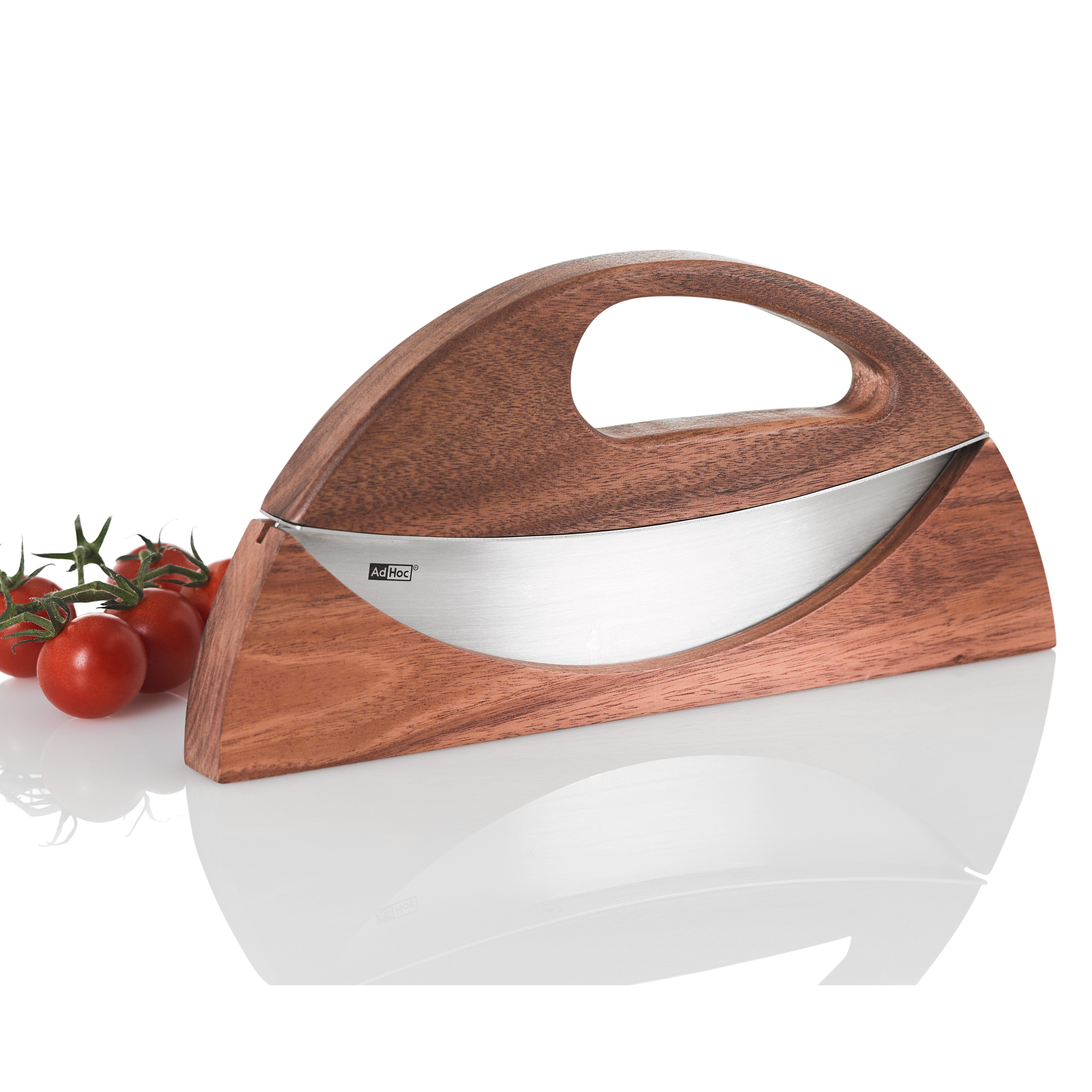 Schnell mal die Pizza oder den Blechkuchen zerteilt, oder Kräuter für das Salatdressing schneiden? Mit dem Wiegemesser WAVE wird das zur wahren Freude. Angenehm schmiegt sich das Messer mit seinem Griff aus Akazienholz der Handfläche an. Sicher im Griff zerschneidet die Klinge mühelos und effizient auch warme Speisen. Optisch ist WAVE zudem ein wahrer Leckerbissen. Die identisch geschwungene Form des Griffs und der Klinge fügen sich harmonisch aneinander. Die Materialkombination aus warmen, lebendigen Akazienholz und der frische von kühlerem Edelstahl wirkt kontrastreich und doch harmonisch. Nach getaner Arbeit wartet WAVE in dem passenden Ständer auf den nächsten schnittigen Einsatz.