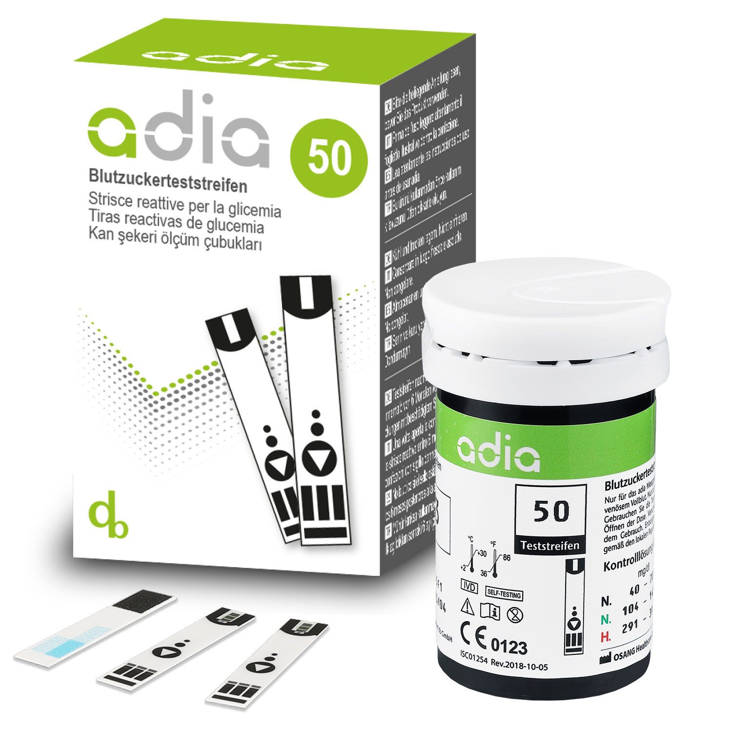 Lieferumfang | 1x 50 adia Blutzuckerteststreifen |